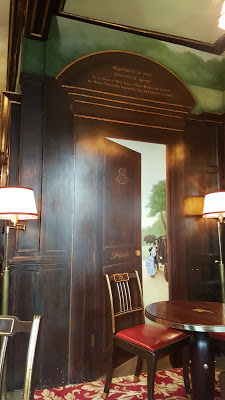 Diane and I took a table by the window, which gave us a direct view of the table and mural, above. This was Edward VII's table, as it stands by itself in a corner alcove, away from prying eyes. The mural disguise's a hidden door, through which the lovely Lilly would slip in order to sit beside her Royal lover.
