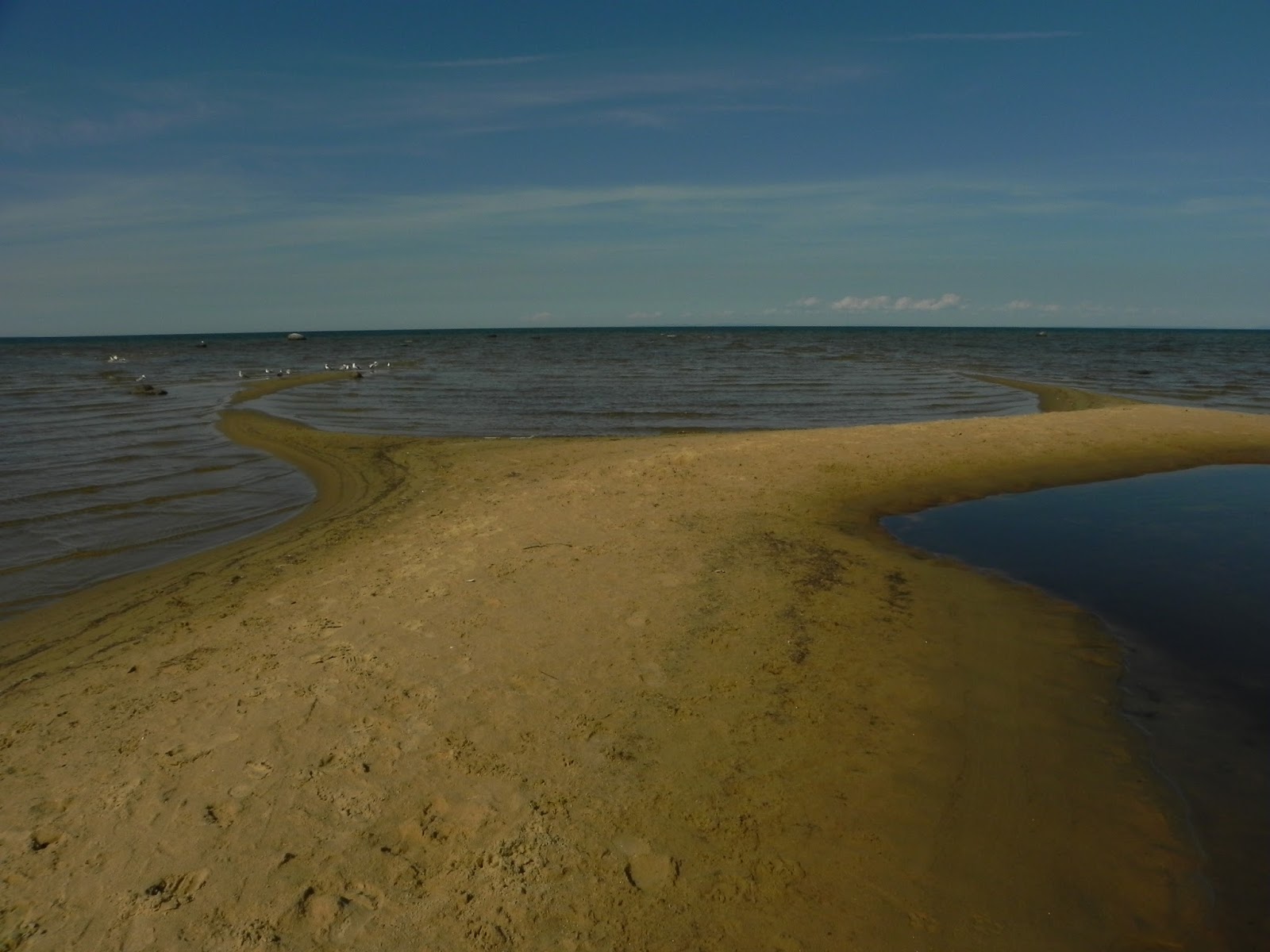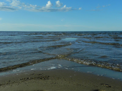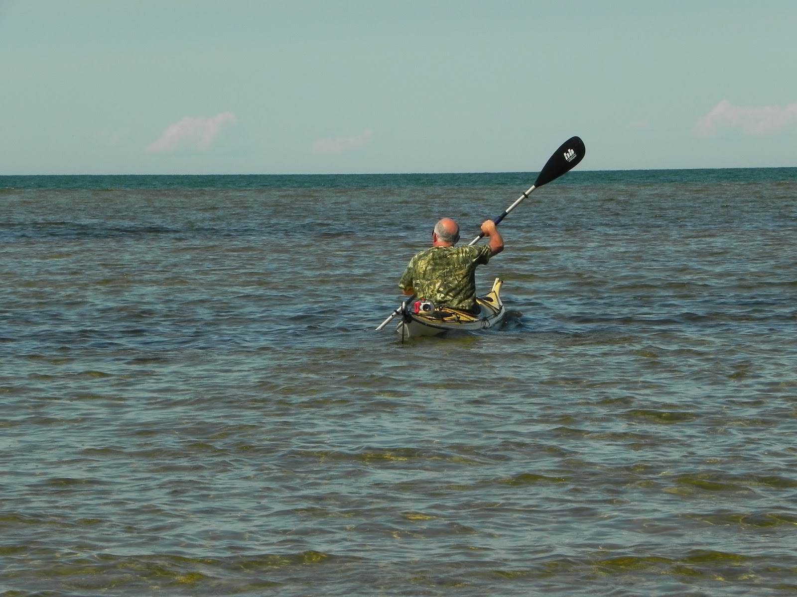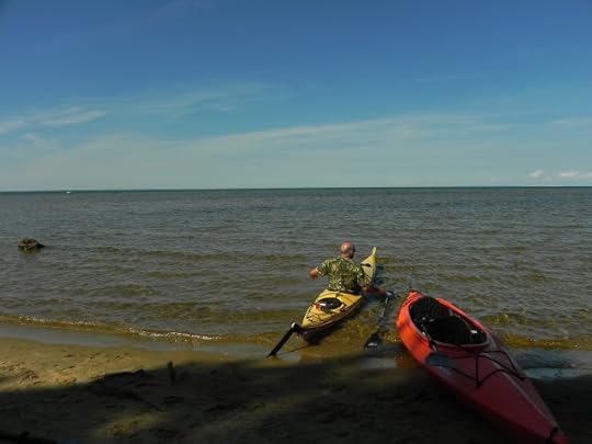 At times waves come from different directions. It could be caused by wind change and the original direction of the waves has not dissolved, or it could be, in the case of The Shallow, rollers from the lake freighters that finally make it to shore crisscross with the direction of the breeze. In any form, as long as they are small (and not dangerous), crisscrossing waves can be a real treat to watch. The Shallows is just that, shallow. We had some fun watching our friends "walk on water." Kayaking in the shallow, and thankfully clear, water became tricky at times as large boulders were barely beneath the water's top. Keeping an eye on the "buried treasures" became a routine task, but not a hassle.