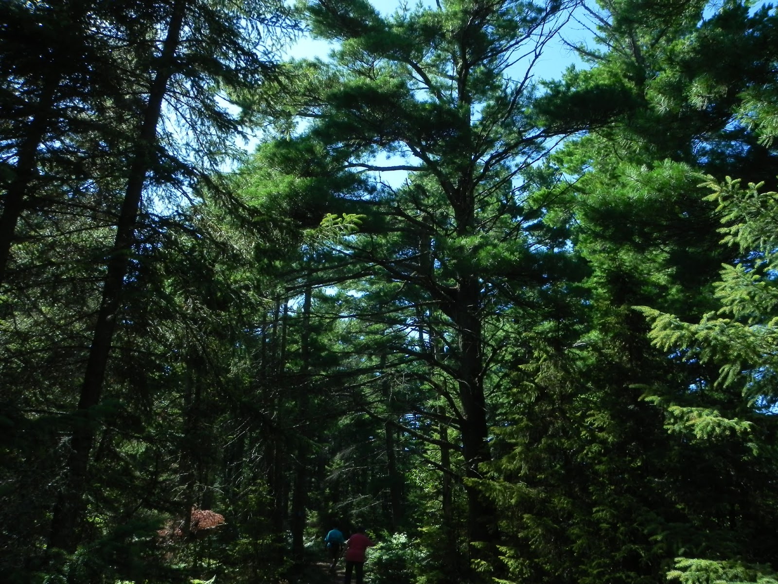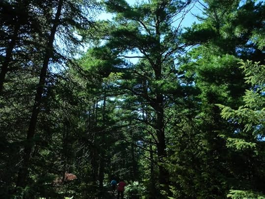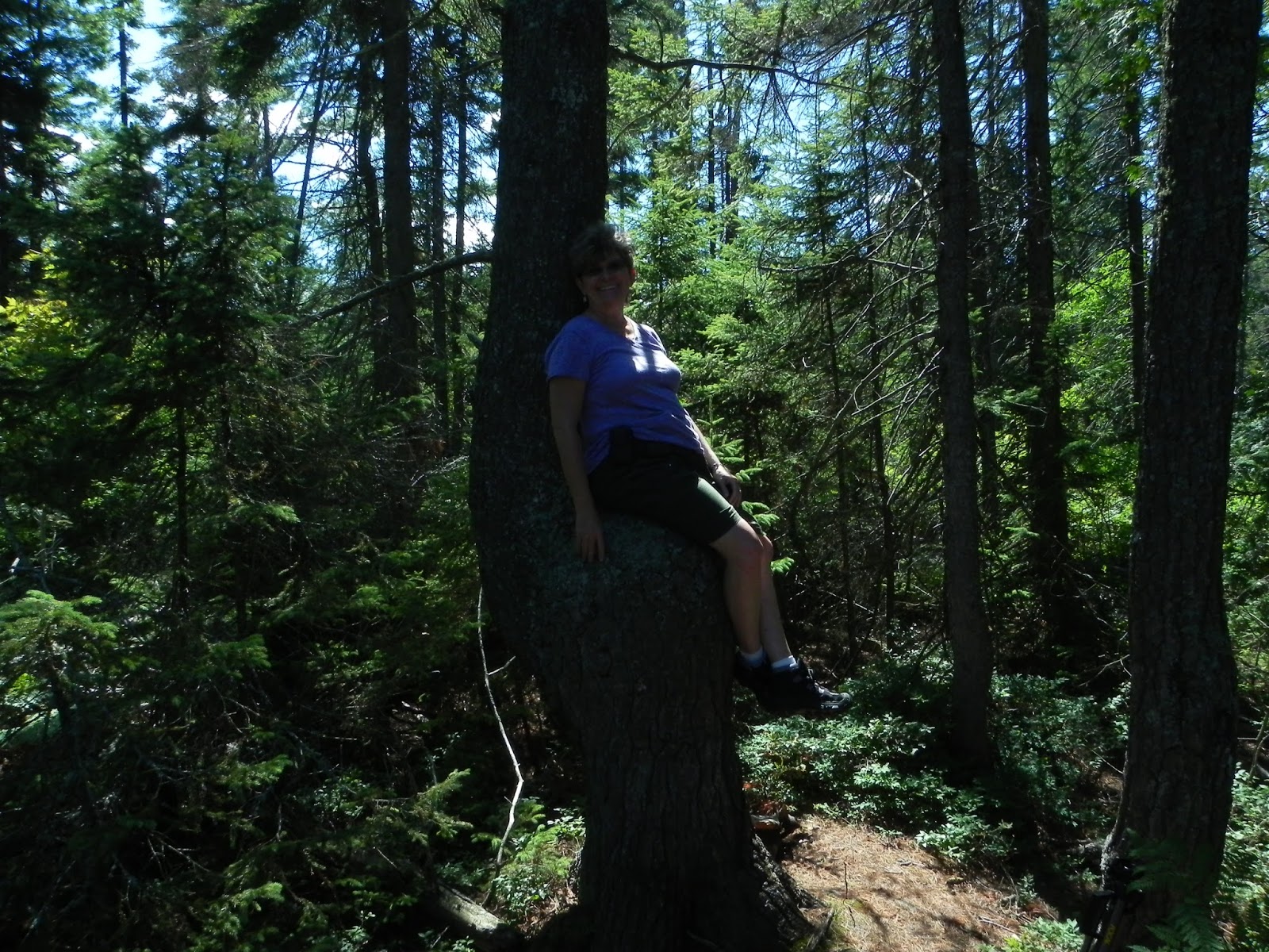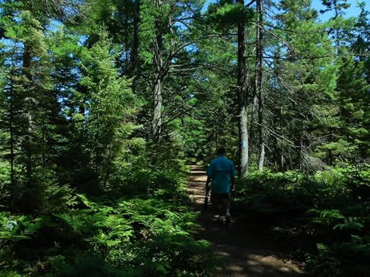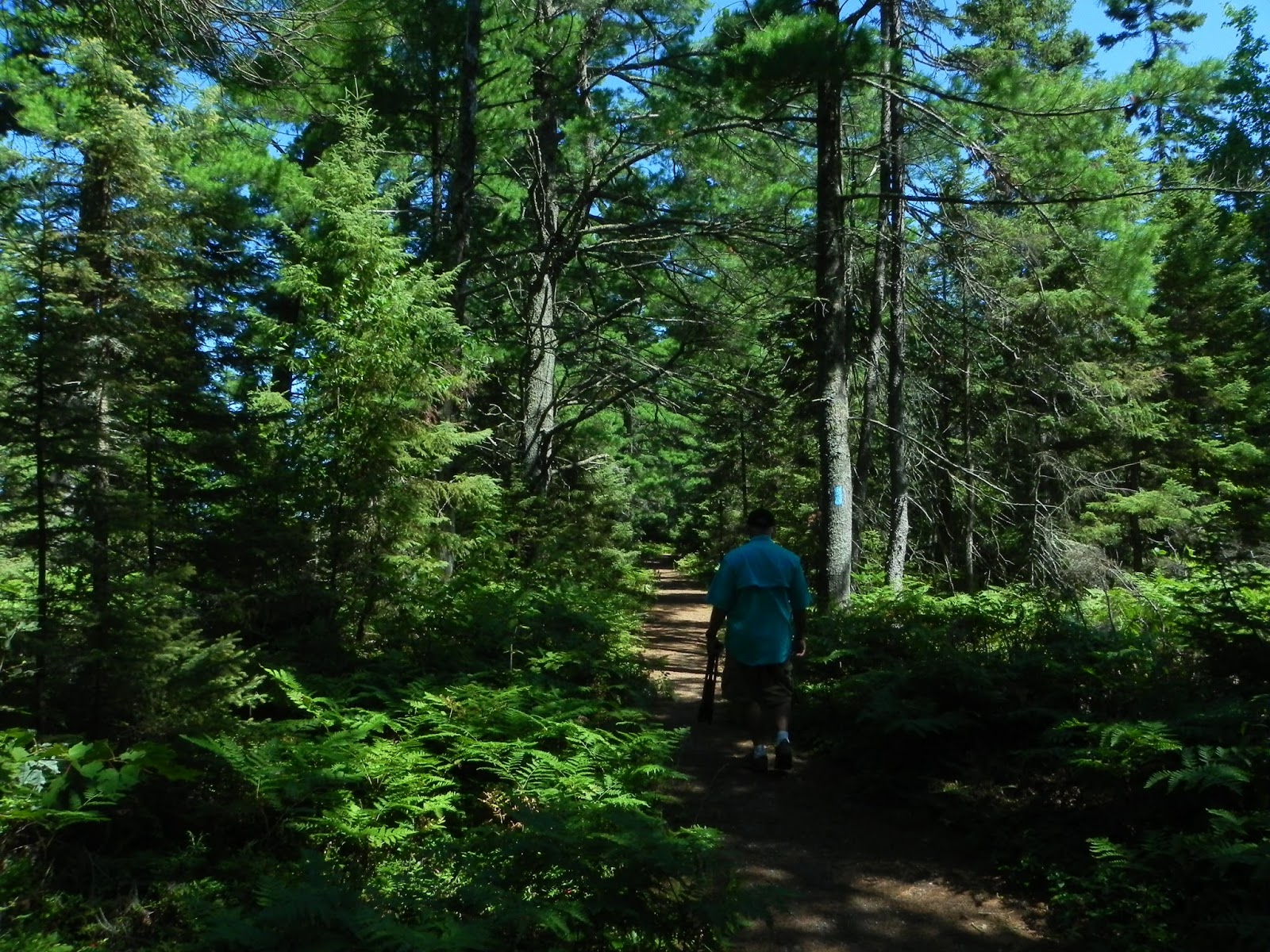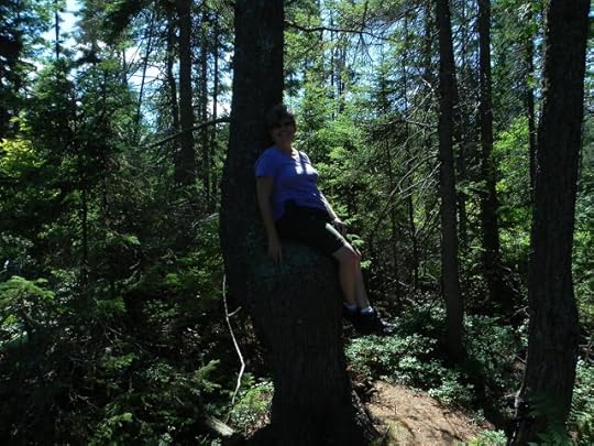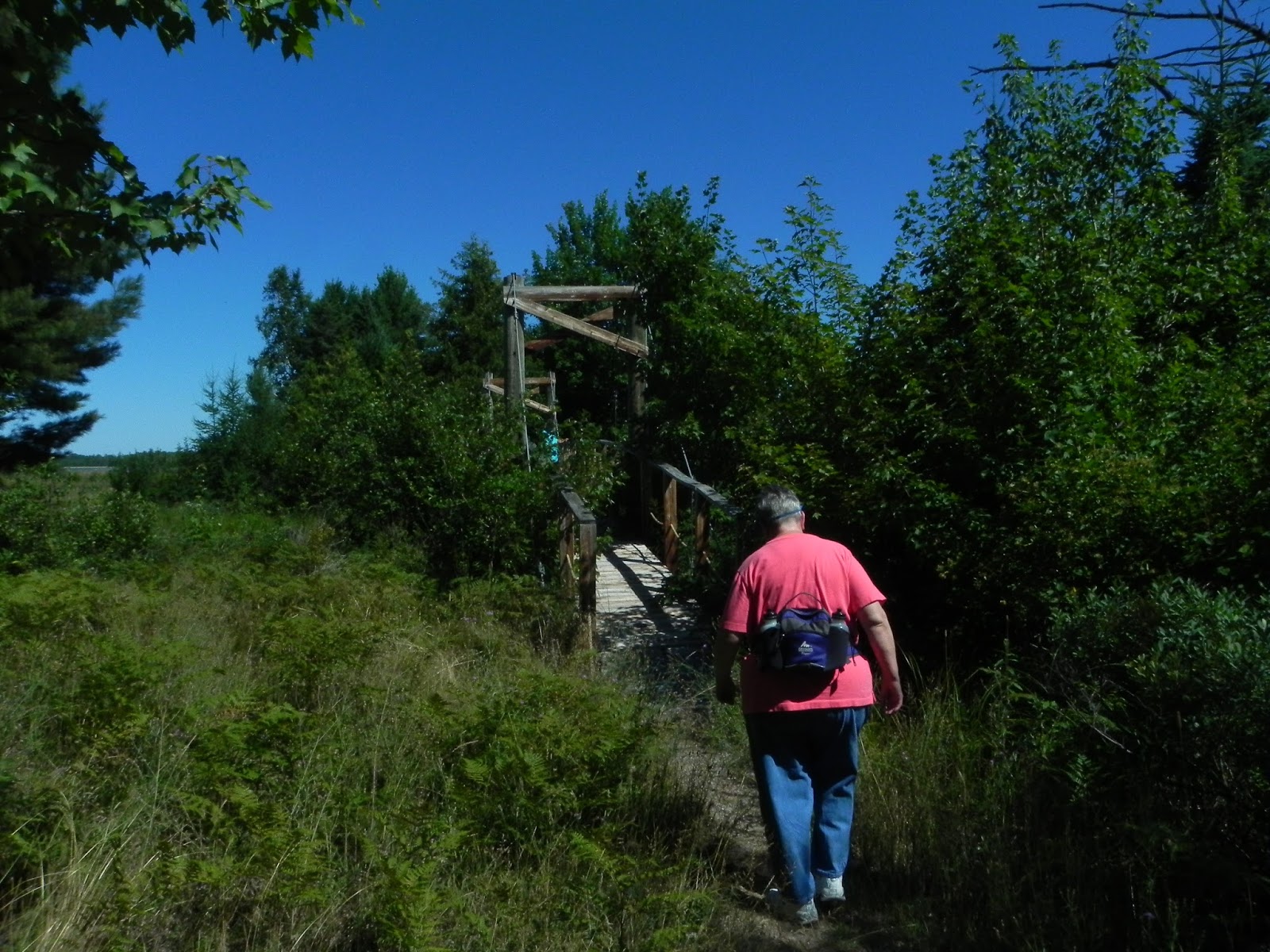 We parked the kayaks and began our hike into the Naomikong forest. We soon found the area to be as beautiful as any "water and woods" area of the UP. We strolled along wild blueberry bushes, and found some interesting shaped trees. For me (Janet) it was a good thing we didn't see any bears...I'm not real fond of those fury man-eaters! But we did see some birds and butterflies.