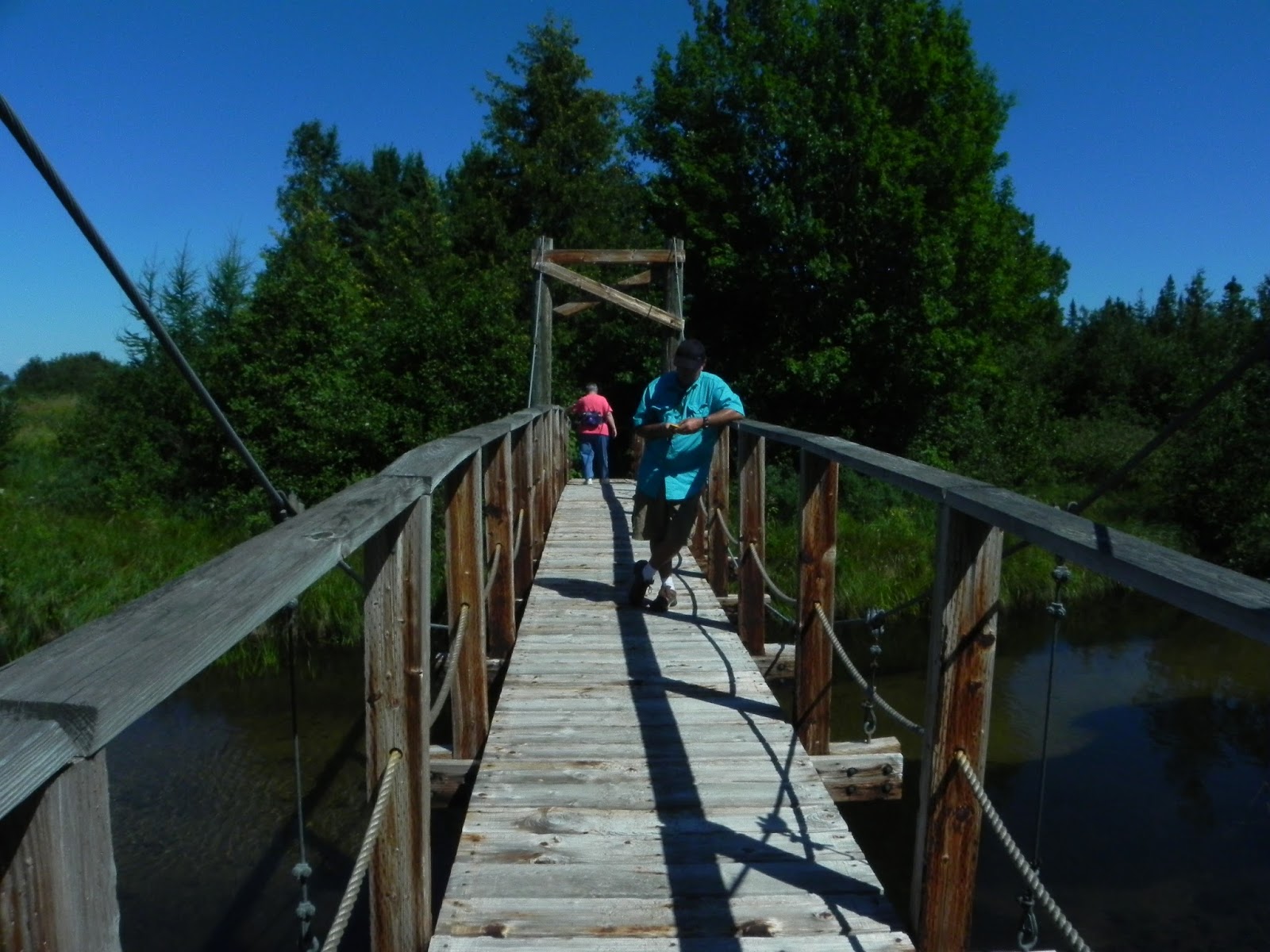 The shoreline peeked through the trees at points along the hike, and Lake Superior, once again, did not disappoint. The scenery uplifted your inner soul and the smell of the north woods played its part as calming aroma therapy. We hiked to the Naomikong Bridge. What a cool piece of woodwork tucked away in the soft pines. It allows you to walk over the Naomikong River plus catch a glimpse of the grandest of the Great Lakes.