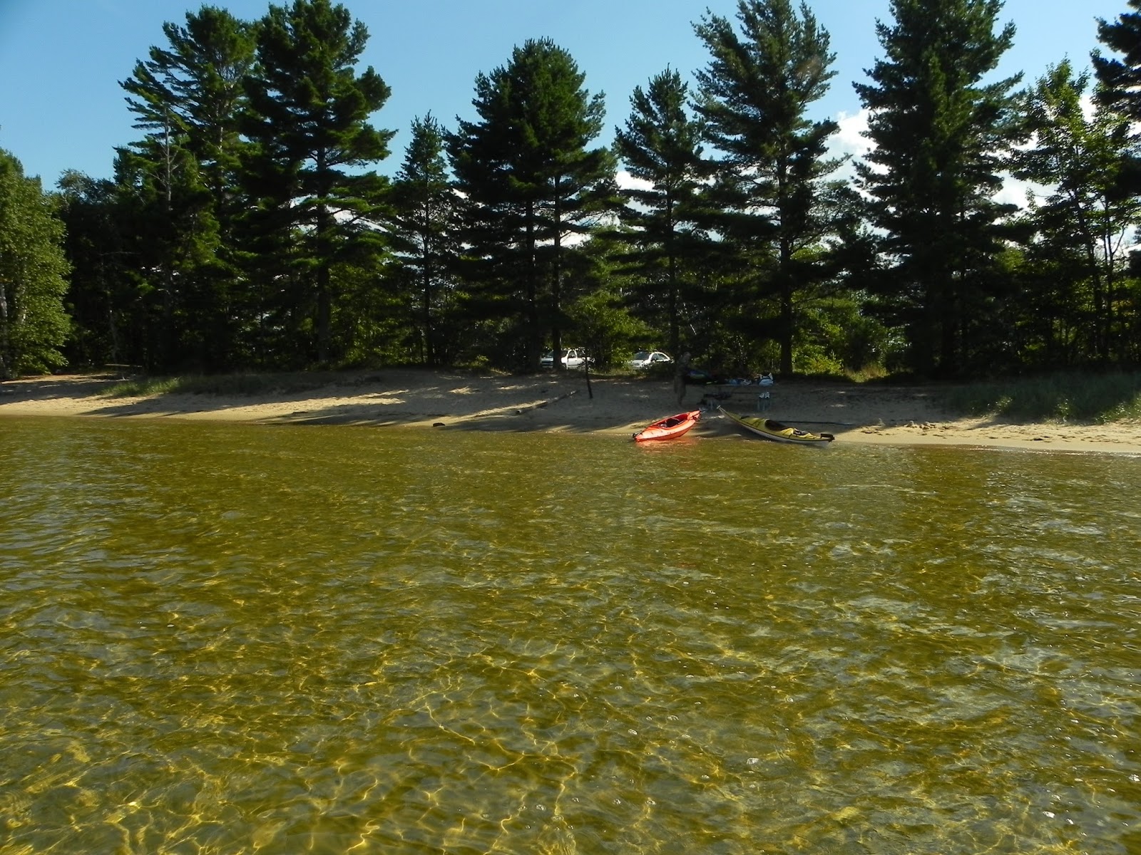 When we returned to The Shallows we readied the kayaks. It didn't take long to get out onto the calm, shallow water. The water remained still for the day (a rarity on any water off of Lake Superior), and the view divine!