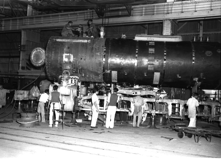 An engine under erection. Locomotive Works. Chittaranjan. India. November 1954. Photo Courtesy: Photo Division, India.