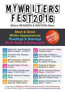 MYWritersFest was organized by Malaysian Writers Society founders, Gina Yap and Tina Isaacs. There are meet & greet, writer appearances and book sales & autographs in the month of October so do check them out at the venue near you... especially if you wished to be a writer :-) The below information has been taken from their first event Facebook page: