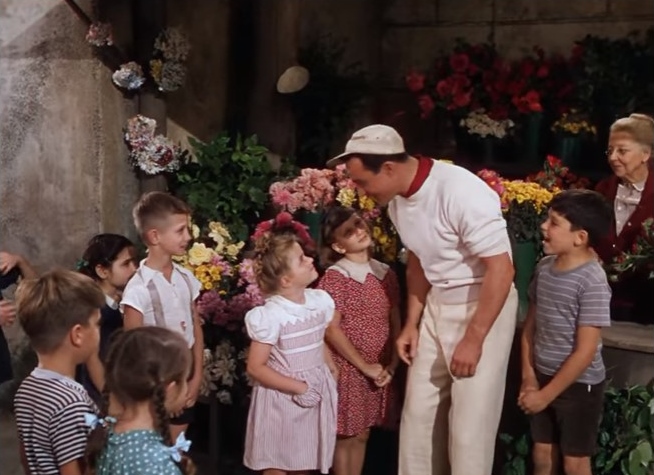 Françoise is the one in the muted pink dress with puffy pink short sleeves.On the braids crisis-crossed over her head: "OMG how I hated those."Though the income was important in the beginning, it was all just a lark with a little pressure to "focus" until I met Frank Capra. He was casting for Here Comes the Groom and tested me for one of the orphan parts. He totally became smitten and tried to make me look like an urchin, putting soot on my face. But I still projected radiant health, even with missing front teeth. I suspect I made him laugh. I remember the first test, where he sat on a stool across from me and asked me to say the same lines with different emotions—teary, joking, fearful. Given massive recent losses I had in my life then (which we won't go into), it was the first time I realized how far one could dig inside to reflect or hide emotions. I did not get the part but he kept me around for a few days just for "good luck." Also my grandmother, whom he called "Mon Generale."