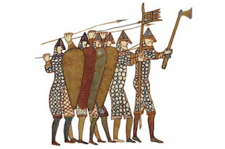 Harold’s foot soldiers try to defend themselves at Hastings in a scene from the Bayeux tapestry. (Getty Images)