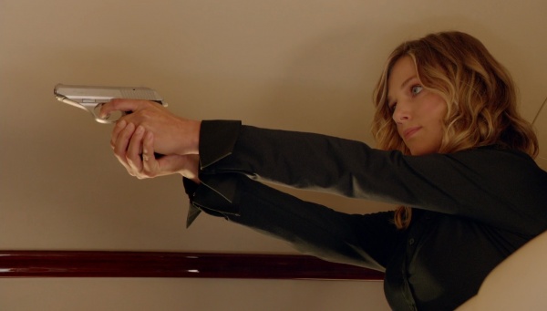Jack introduces Riley to Mac and Patricia. One drawback: She currently sits in jail for hacking into a system to help someone ala Marvel’s Agents of SHIELD’s Skye/Daisy. She agrees to help them in return for early parole. They give her the computer, which their original tech treats like a delicate flower, and she smashes it. She then gets the computer chip, puts it into a different PC and rips the info straight from the drive as if it was nothing. This hack gives them a face of the guy who shot Nikki. They use facial recognition and cellular tracking technology to track his location where the buyers are going to make the exchange: California, a hotel. They go to the hotel where Mac mixes some ammonia, aluminum, and some acid to make a smoke bomb that sets off the fire alarm to drain the hotel of its guests. As everyone is leaving, Mac sees not only the guy they’ve been chasing but—prepare for your jaw to drop—Nikki, alive and well.