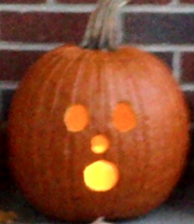 Ann works hard on her pumpkinAll Hallows’ EveSculpted my way into it at my friends’ house, and received the ultimate compliment at home from seven-year-old trick-or-treaters, a witch and baby bear, who pronounced my pumpkin “Very cool!” “Carved it myself,” I beamed. Costumes seem traditional this year, with a renaissance princess and Oz scarecrow my favorites. On the Internet, I found a treat—a poem of mine from last summer.
