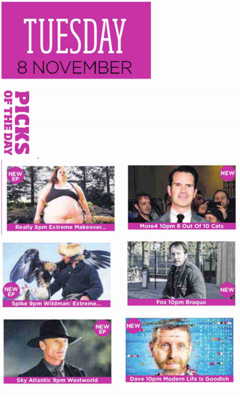 And the show has been 'pick of the day' in the Guardian Guide, the Daily Mail’s Weekend, Mail On Sunday's Event magazine, The Times, The Sunday Times, the Sun’s TV Magazine, the Mirror’s We Love TV, People and RTE’s Guide as well as ‘digital choice’ in the Telegraph.