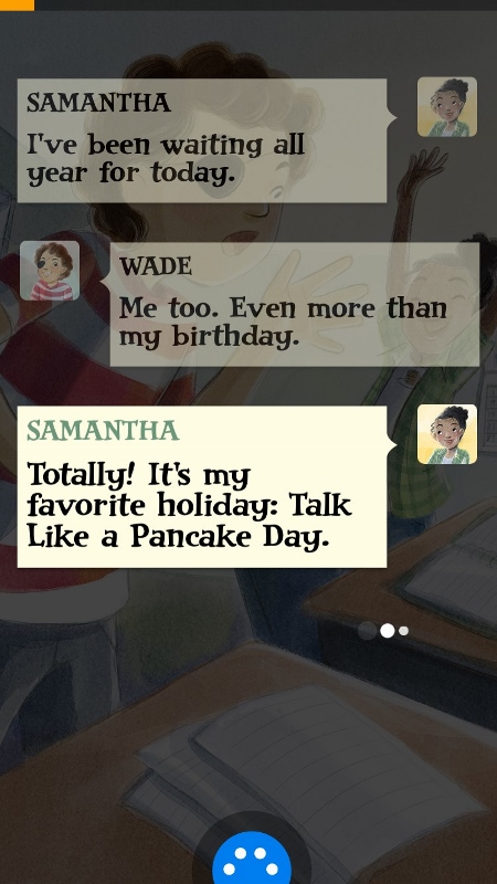 It intends to deliver a steady stream of original, custom-illustrated short stories aimed at young readers, all told entirely via conversation between/among two to four characters (whether "live" or via text). The story pops up one line at a time, like text messages.