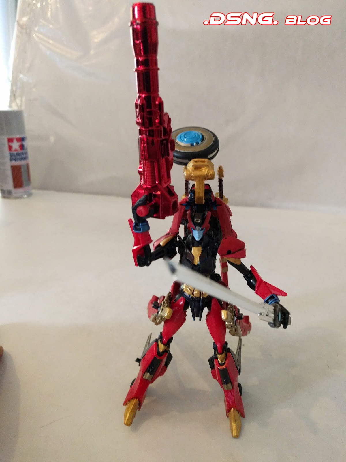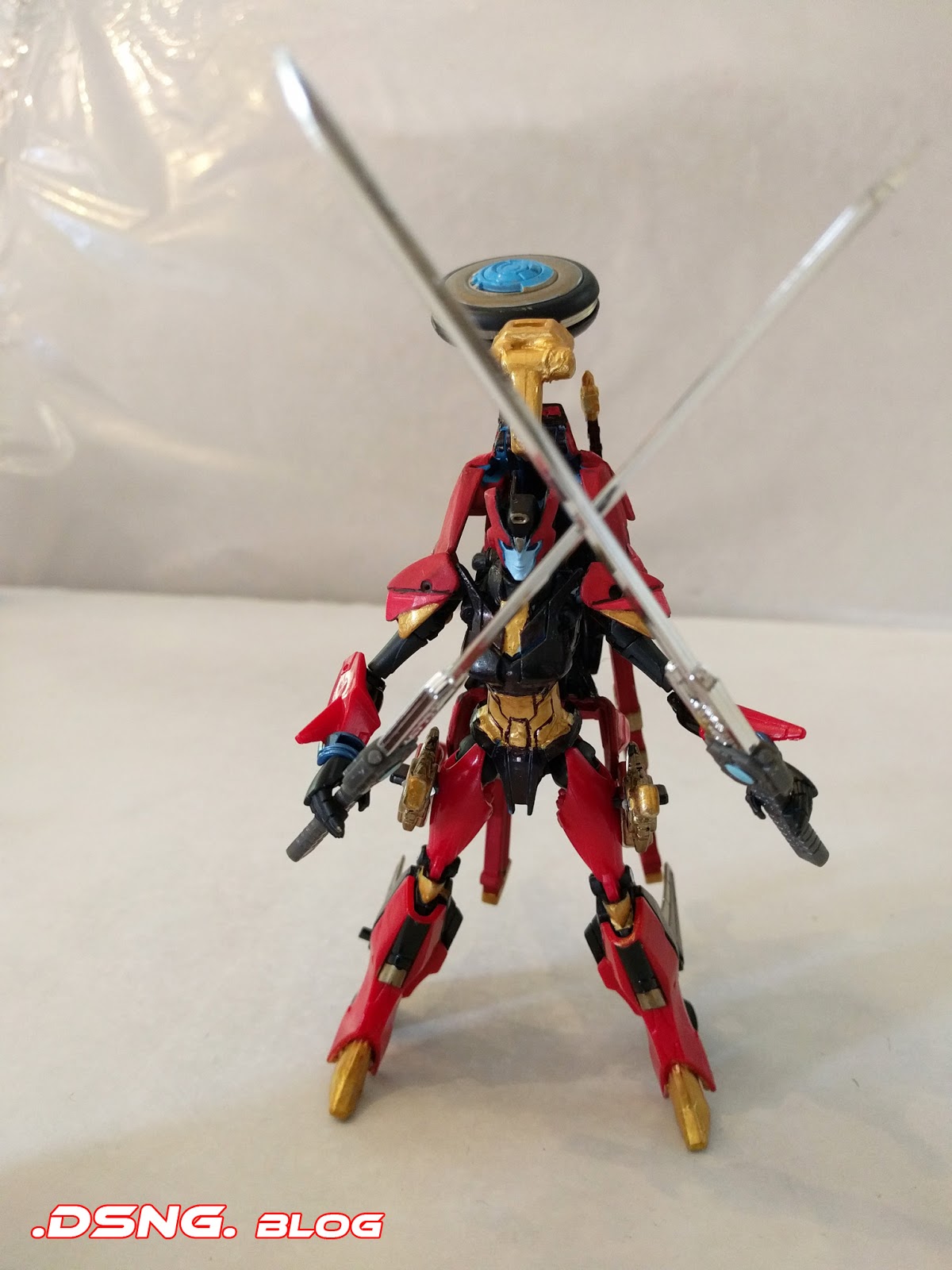 Also, I thought of adding a ninja-like golden Optimus Prime mouth-guard to her... I dunno if I'll still do it. Such small things can easily be created from the plastic case that comes with the toy, when you utilize a curved corner and cut it down to size and then glue it onto her face, to cover her mouth... I got that tip from another veteran toy customizer. Over the course of this year, I've also learned to use other small household items to customize TF weapons [making hem bigger or longer], and that sort of endeavor is quite cool and takes some creative thinking ;)