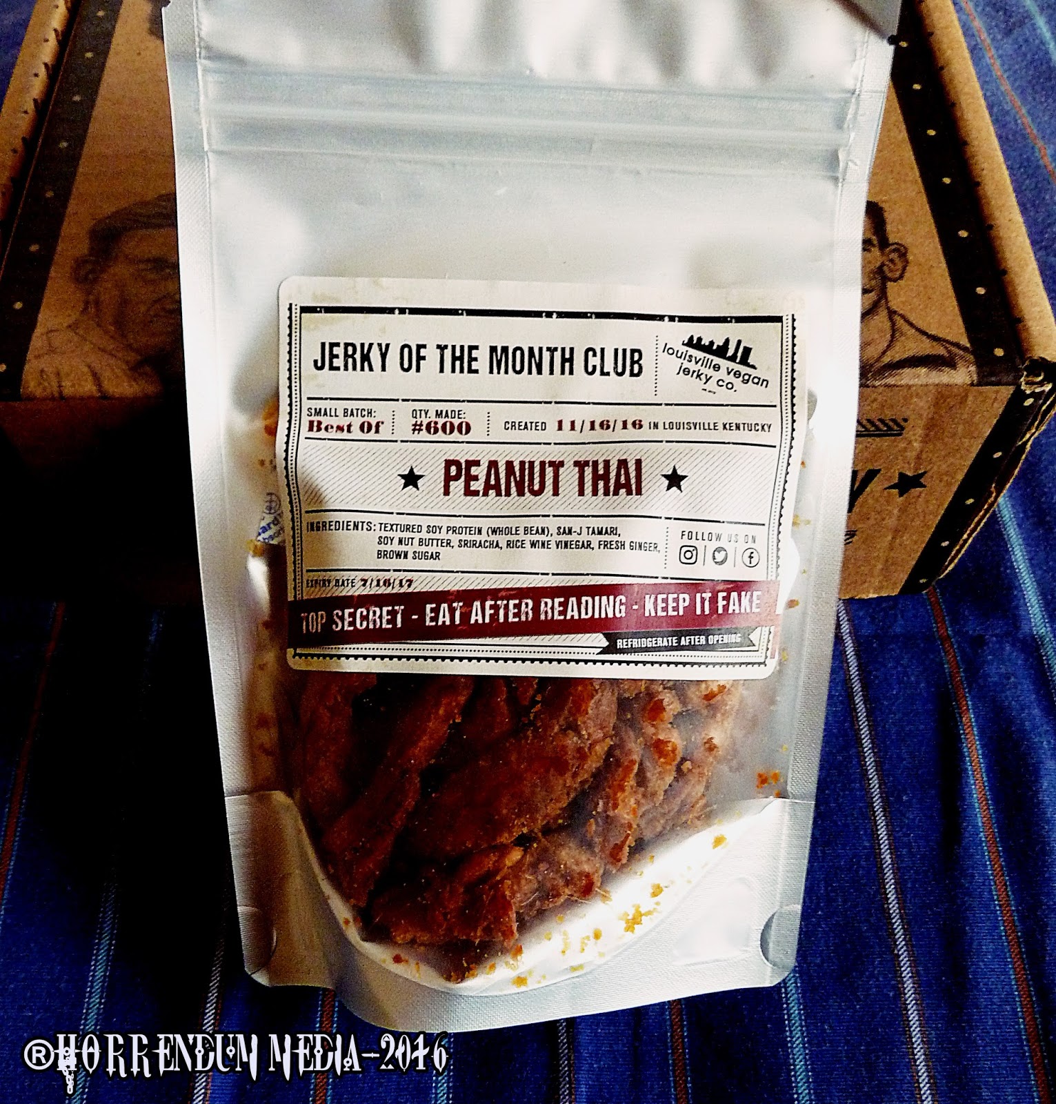 Here we have Peanut Thai flavor jerky. I love peanut Thai anything, so I already know I'm going to love this one!