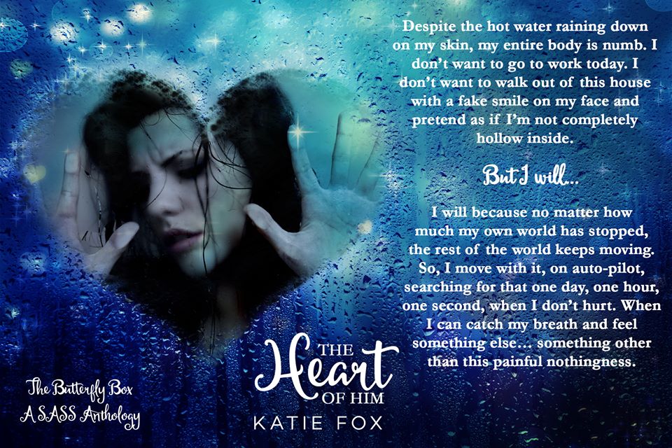 Katie FoxThe Heart Of HimContemporary NAOne day. One hour. One second.That’s all it takes for everything to change...Cassidy Porter is barely holding it together. She lives everyday of her life with a heavy weight on her chest, searching for that one moment when she can catch her breath and not feel the pain that serves as a constant reminder of all that she’s lost.Until him…Samuel Copeland spends his days in the local coffee shop, watching and observing, trying to make sense of his life and the second chance he’s suddenly been given. He doesn’t know how to move forward or where to begin.Until her...Brought together by fate, or perhaps—more simply—the hearts beating within their chests, the two form an unexpected bond, one that has them asking: can two hearts be destined only to beat for each other? Buy LinksUS Link: http://a.co/bm5ExQNUK Link: http://amzn.eu/bl6xlyR