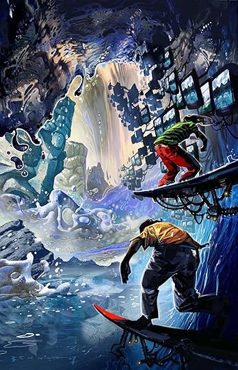 Rudy Rucker and I have been writing stories of surf-jerks Zep and Delbert since the mid 1980s, beginning with “Probability Pipeline” which appeared in George Zebrowski’s Synergy series in 1988. It’s a series, but we treat them like episodes in a comic strip, so not much carries over from one story to the next, other than the characters. They have changed over the years, but not much.