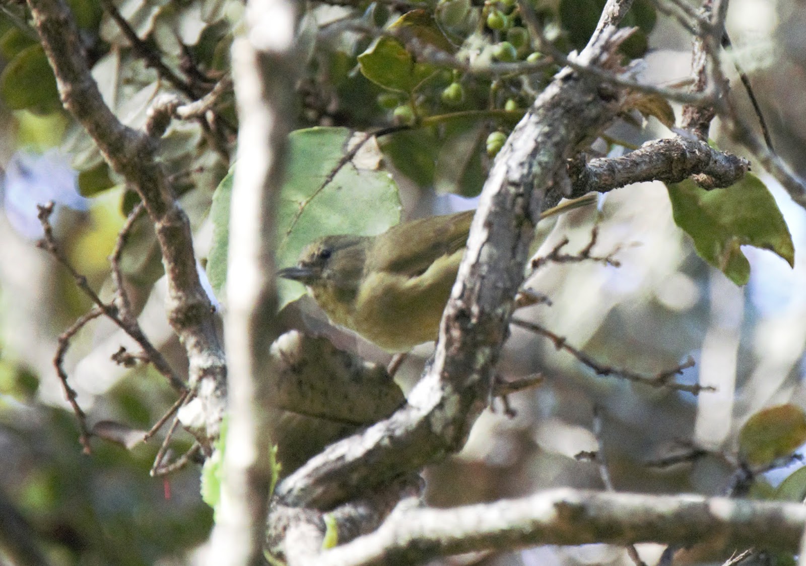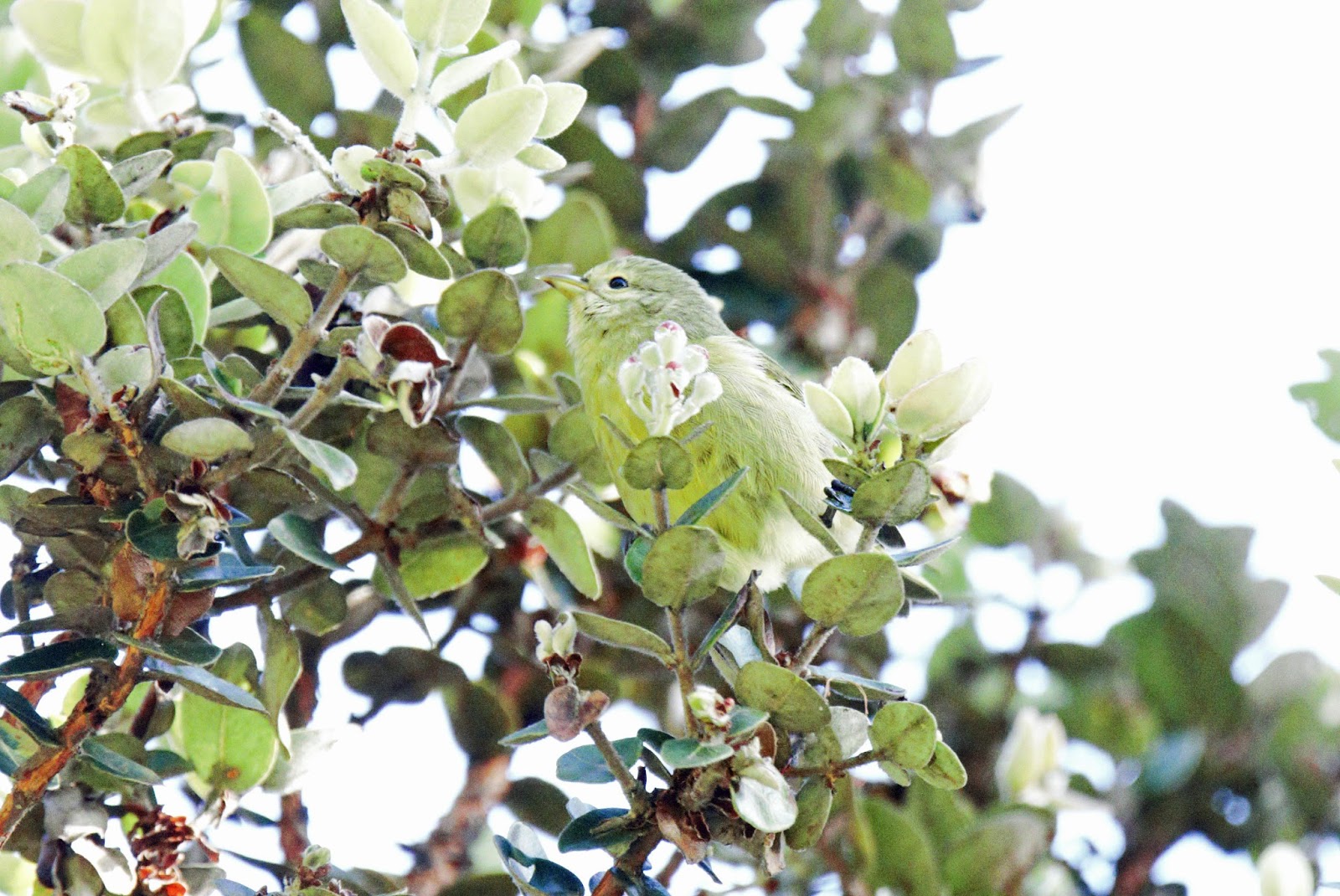 Although I saw two brilliant orange males, this endangered bird is difficult to photo as they are so small.  I was lucky to get photo ops of these two female types.  The two related species (were subspecies went extinct on Oahu and Maui in the mid 1990s.