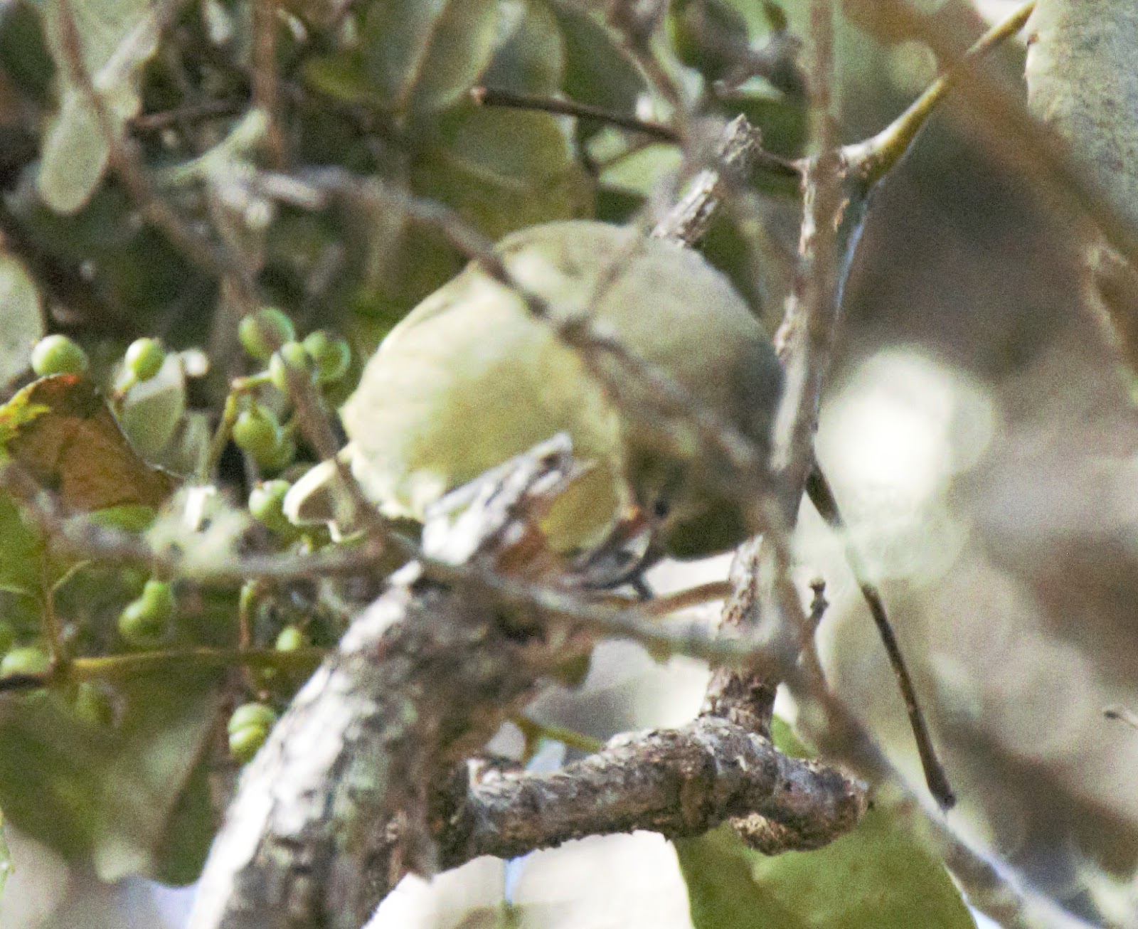 Heard only and about as well as you can hear this bird with call and song.  Saw it head out the back door of a tree and despite efforts by Dr Probst we could not see