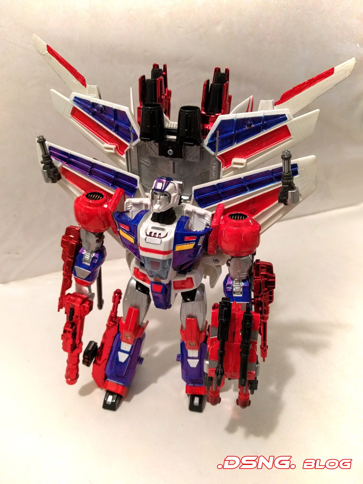 That last pic shows a comparison between this Jetfire toy and the custom Leader Class Battle Mode Ultra Magnus, from the TF Combiner Wars line. I've done an article on the Battle Magnus toy before. I gave him some custom weapons and repainted him from his powder-blue and white form... and that article is over Here!- Article written by the artist & author of the DSNG Sci Fi Series