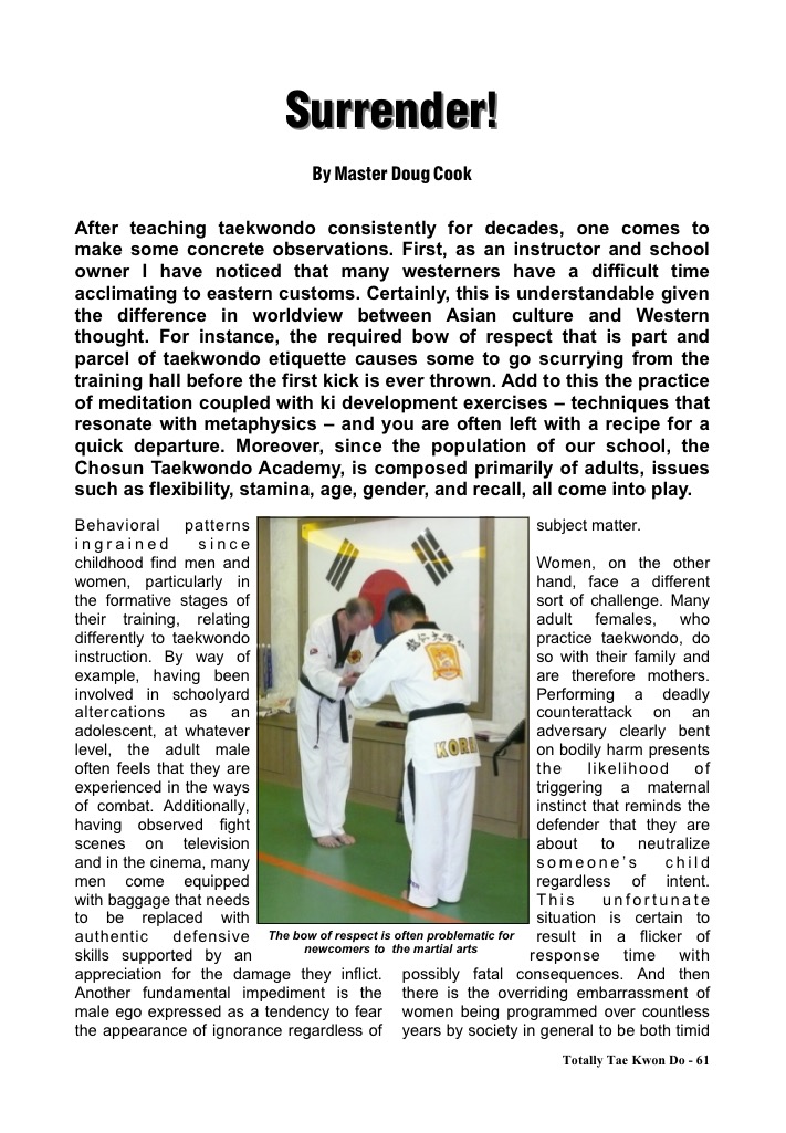 "Surrender" A vital and overlooked component of the martial arts...read more in the current issue of