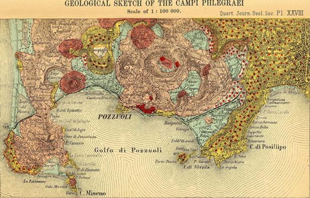An 1845 map of Campi Flegrei by the Quarterly Journal of the Geological Society of London. (Wikimedia Commons)