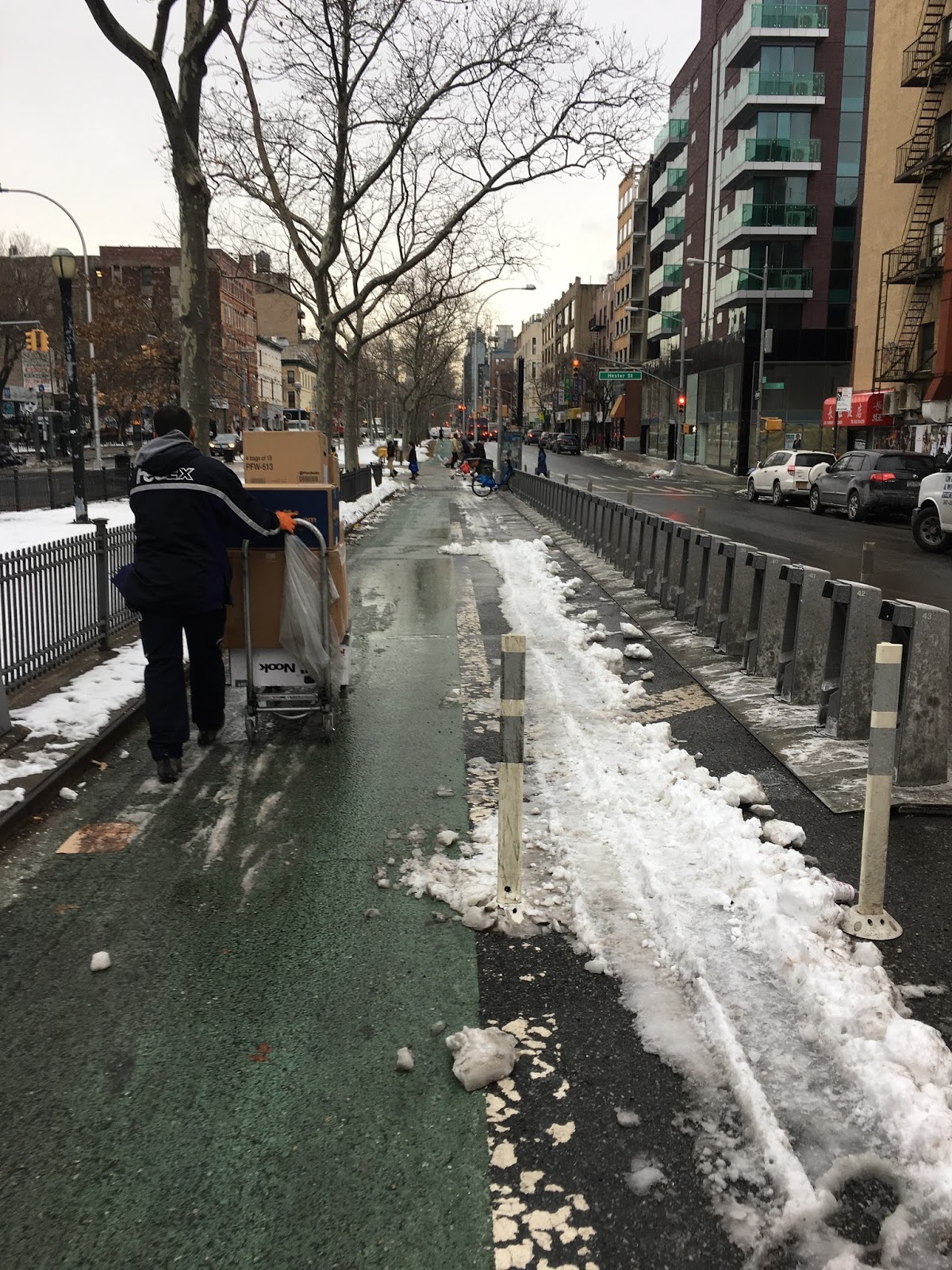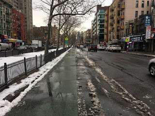 I then made my way onto the Allen Street/1st Avenue bike lane, which was impressively clear of snow: