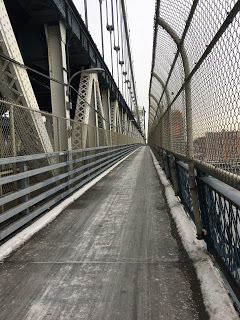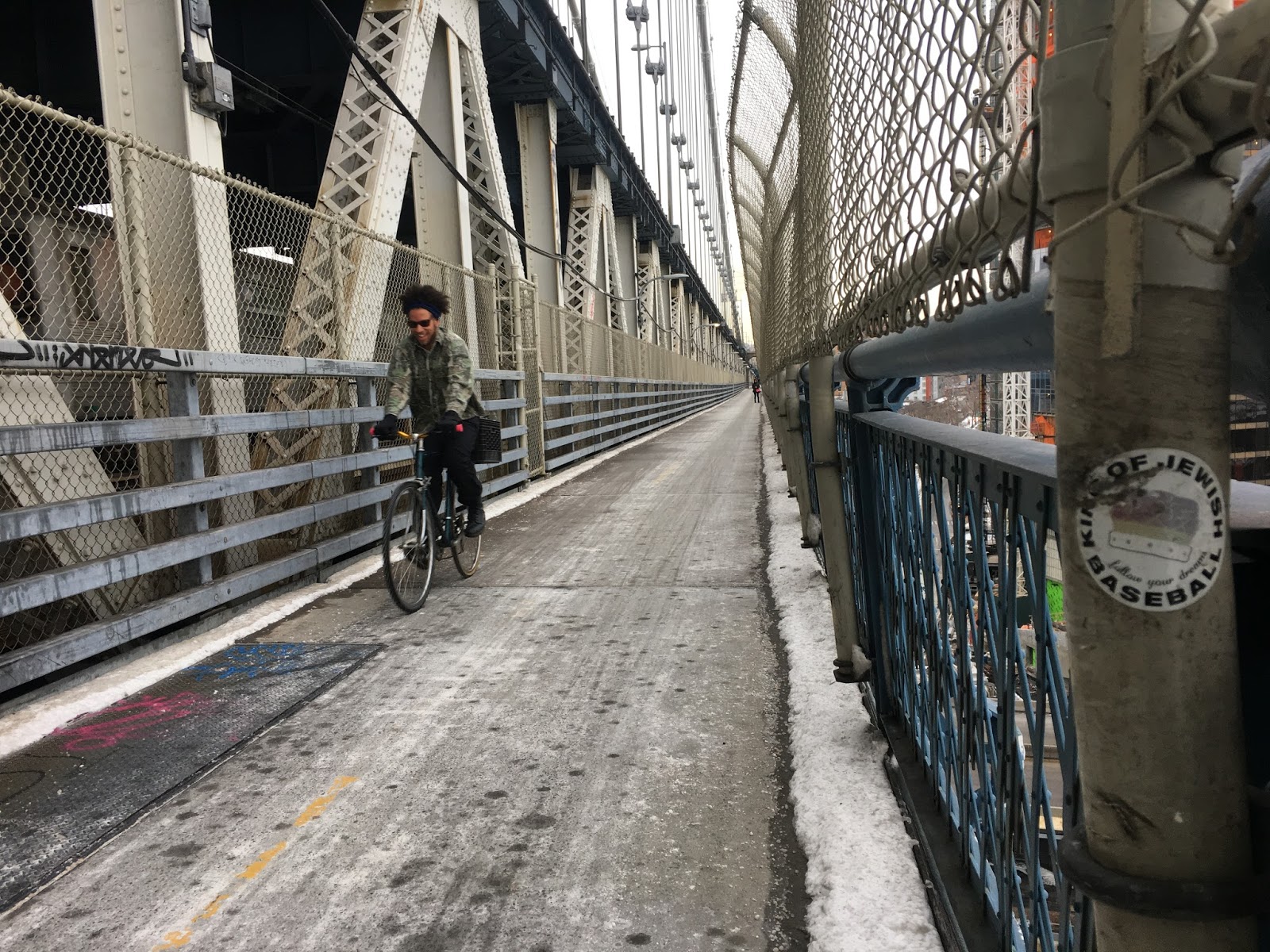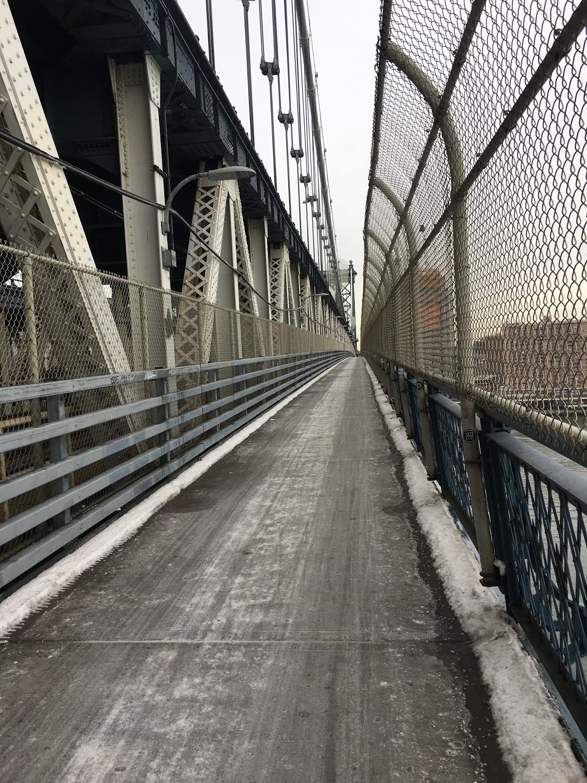 During rush hour the Manhattan Bridge is one of the premiere Cat 6 racing venues in New York City. However, there's virtually no action to be had in the middle of a weekday when it's like 30 American degrees out, so instead I occupied myself with the view: