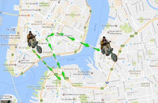 I've made my peace with this and have for awhile now been of the opinion that the wooden pathway should be fully ceded to pedestrians and that a lane of automobile traffic should be removed from the roadway and replaced with a bike lane. Sadly the chances of that ever happening are virtually nil, since New York City drivers cling to their free bridge crossings like the rest of America clings to their assault rifles. Nevertheless, instead of yelling at the tourists to get outta the way like a doofus, I merely flash a tight-lipped smile, maybe flick the bell gently if necessary, and generally try to delude them into believing that New York City cyclists are possessed of both dignity and composure.