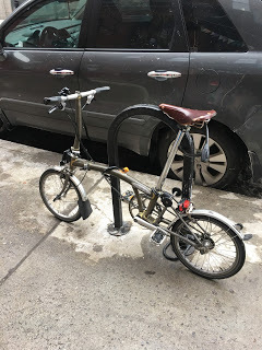 Before taking possession of a folding bike I always used to wonder why people locked them up instead of simply folding them and taking them inside. Now that I have one, I realize there are generally three reasons for doing so: