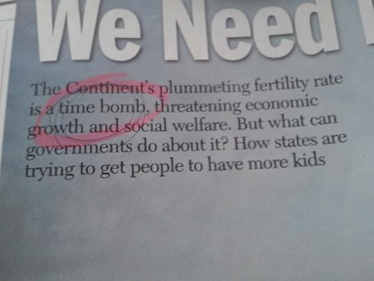 Your piece certainly doesn't apply to Europe; check on the pictures by Time magazine of November 29, 2004; and this quote: "Germany, in fact, is experiencing such a birth dearth that its population could crash from 82 million to 24 million by the end of the century"; ministers were, back then, worried about the crippling effect on the growth rate of the continent.