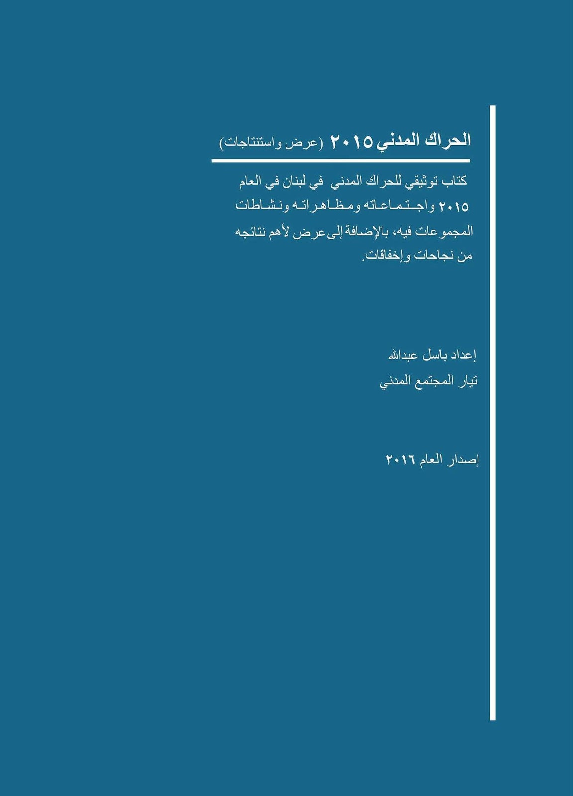 يعرض هذا الإصدار مسيرة الحراك منذ انطلاقته، مُروراً بالمظاهرات والتحركات والاجتماعات التي نُظمت في إطاره، وصولاً إلى النتائج التي تمخّضت عنه.
