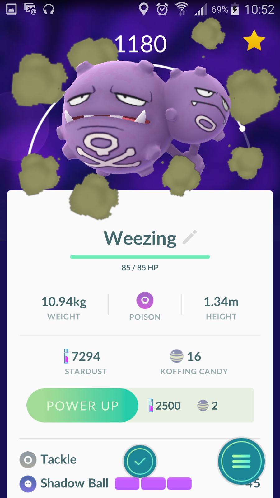 This is the 113th addition to my pokedex, courtesy of evolution - a Weezing. This one is from a Koffing that wasn't powered up, and is part of an experiment, which I'll share in six or twelve months or so, when the data is in.