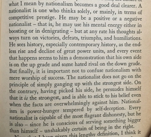 “Nationalism is power-hunger tempered by self-deception.” Orwell