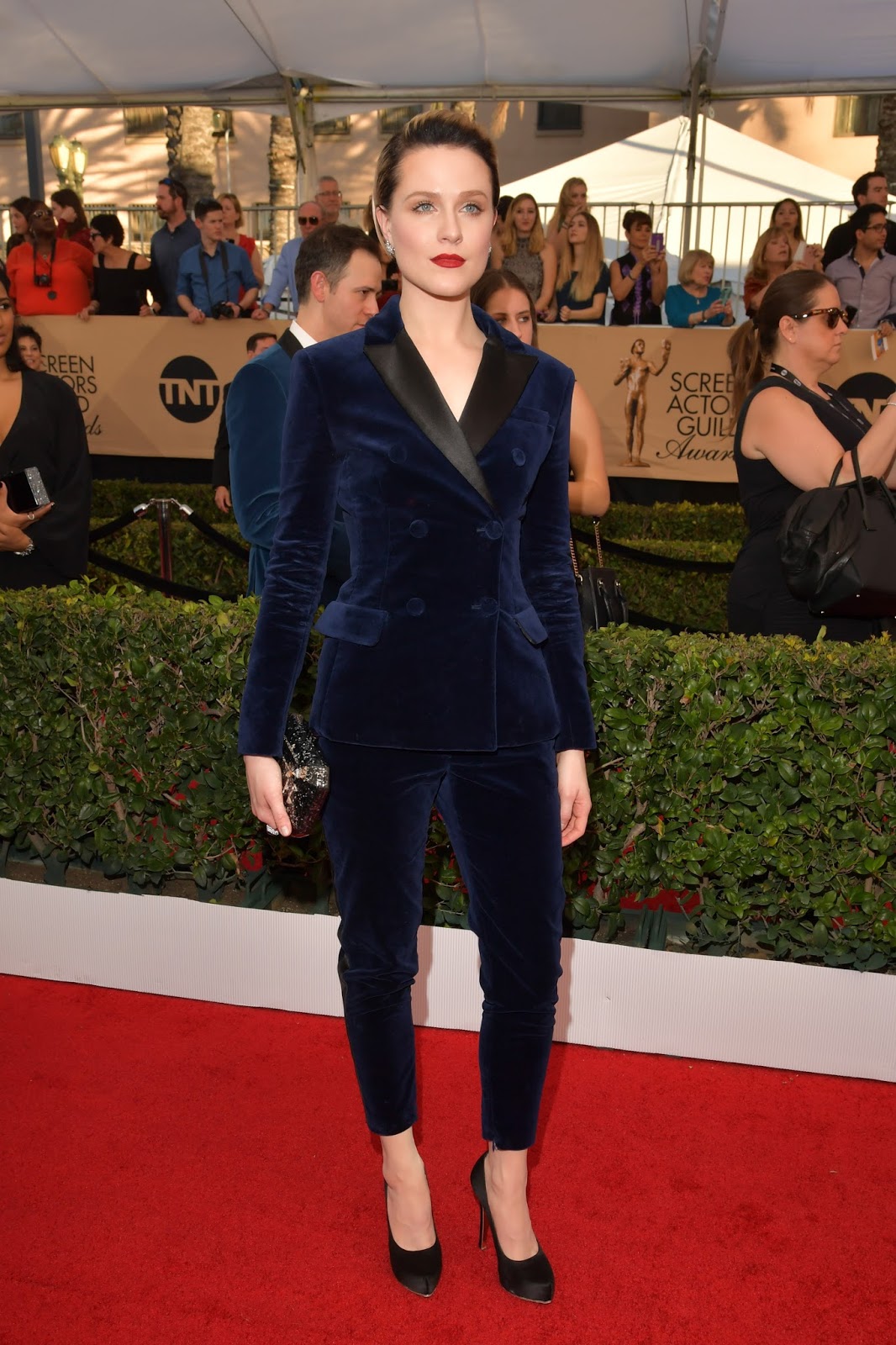 8. Evan Rachel Wood in Altuzarra: Many actresses take more style chances at the SAG Awards and Evan Rachel Wood chose the awards show to do so in this navy blue velvet Altuzarra pantsuit. I thought she looked modern, sleek and oh-so-sexy. While I might have wished the pants were longer and more "Le Smoking"-esque, I still thought this was one of the 10 Best Looks at the 2017 SAG Awards.