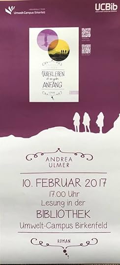 Am 10.2. um 17 Uhr lese ich in der Bibliothek des Umweltcampus-Birkenfeld aus „Überleben ist ein guter Anfang“. Erste Plakate wurden bereits in freier Wildbahn gesichtet. Die sind richtig cool geworden, oder?