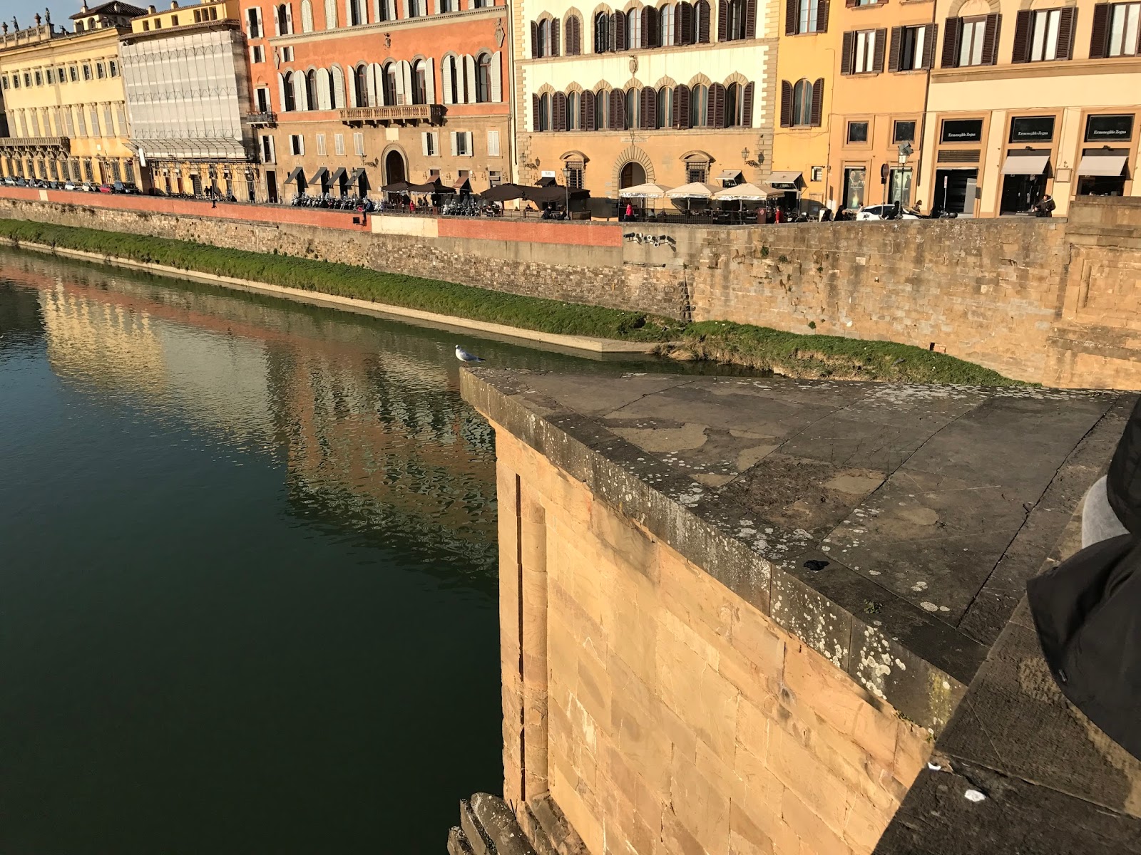 This pigeon, commanding the Arno from its perch on a piece of a bridge.