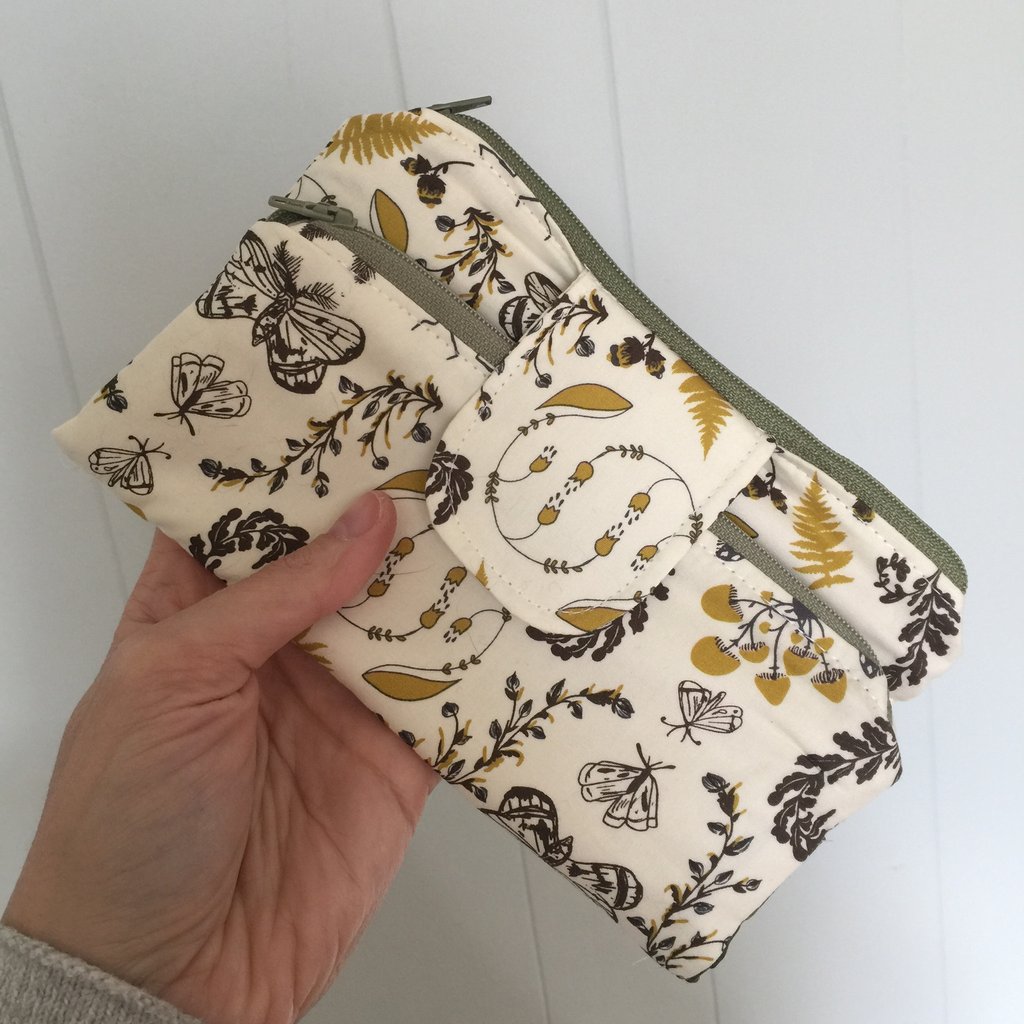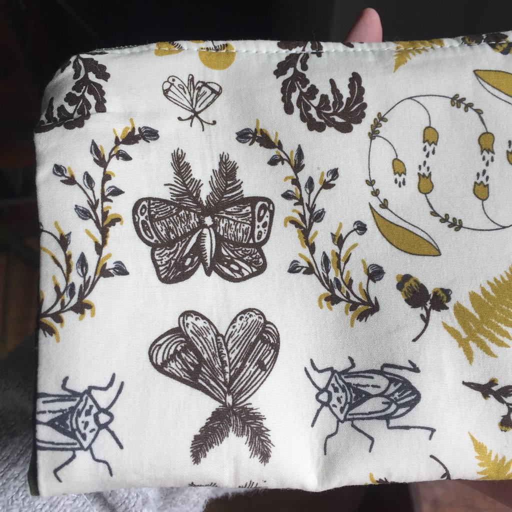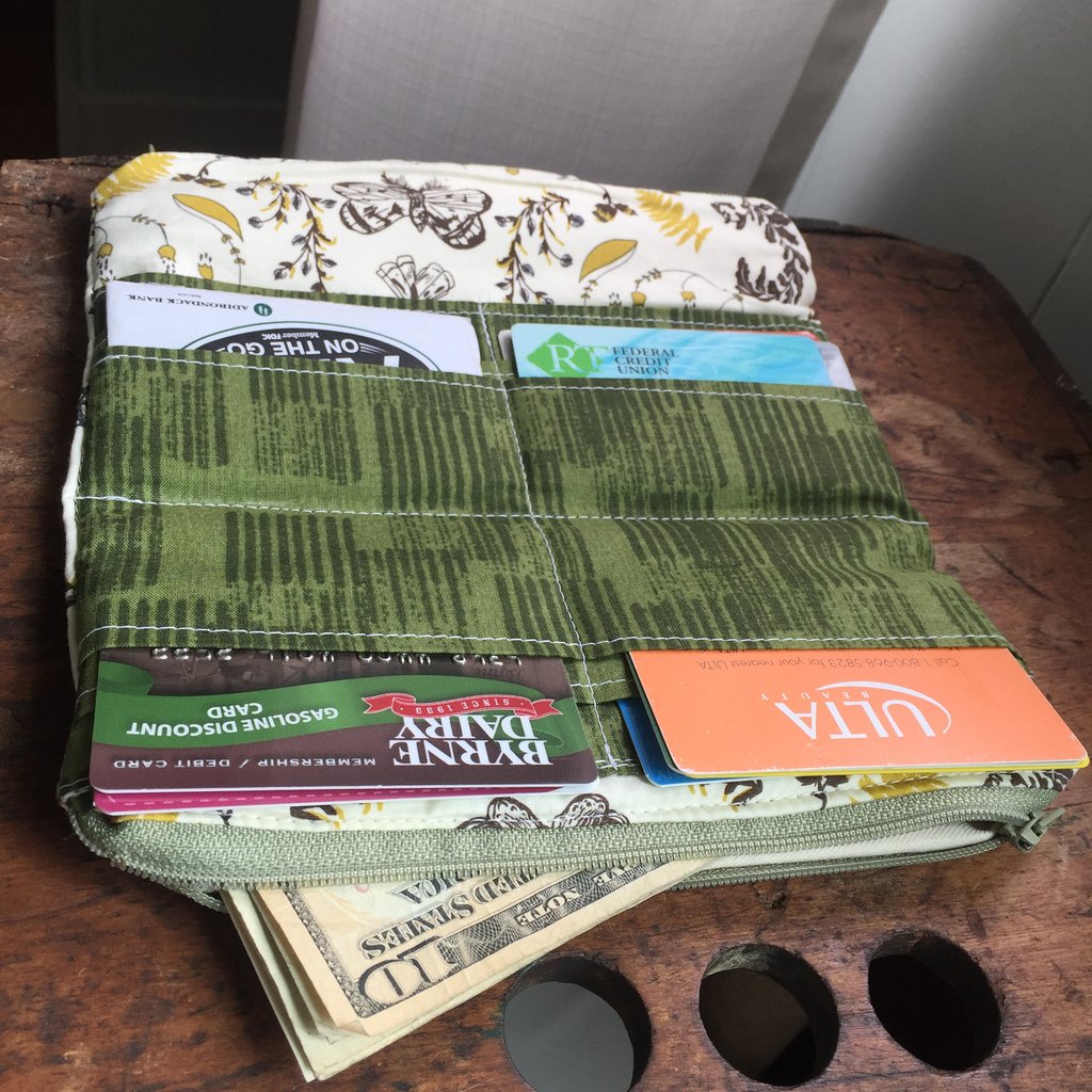 This fabric is a definitely favorite. I love it paired with some olive green zippers and interior card slot pockets.