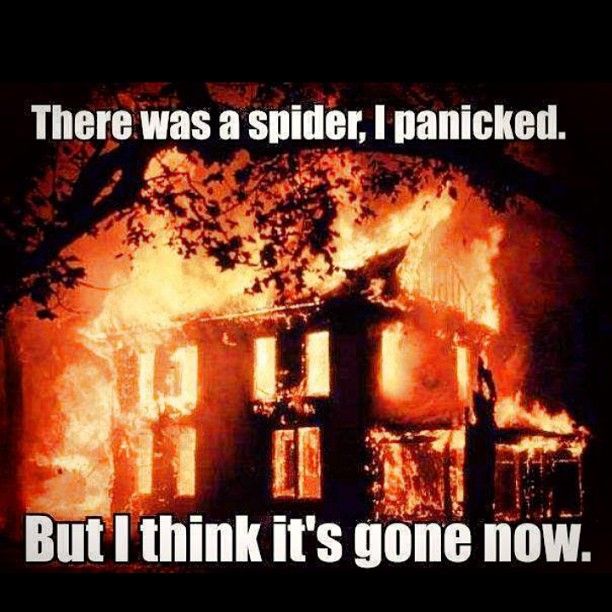 Really?You’ve been ignoring me this whole morning and you ask a question now?!It was a dilemma. Fear of the teacher vs fear of the spider.Hmmm . . . that’s a toughie.I decided on the half-way approach. One eye on each.Yeah. It didn’t work. I gave a bit too much attention to the teacher and lost sight of my busy little friend.Partway through my answer, something touched my leg.I am not making this up.My brain equated said touch as ATTACK OF THE DEADLY SPIDER!!! EVERY MAN (or woman) FOR THEMSELVES!!!I leaped up out of my chair and did a week’s worth of cardio in only four seconds, to the amusement of my fellow students and astonishment of the teacher. Finally, seeing no spider, I returned to my senses.And my seat.The spider never appeared.I figure that means one of the following scenarios:1. My impromptu tarantella flung the little monster to the far side of the sun.2. He was never on my leg. Which also raises the question: What—or who—touched me?3. Spiders don’t exist and are merely little brain aberrations. (Preferred.)Which do you choose? And what scares you?
