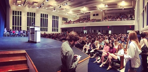 But what convinced me most of the connective tissue between Levi Pettit and your current student body—the elephant in the room, if you will, that attempted to stomp me on your stage for its amusement, was this: