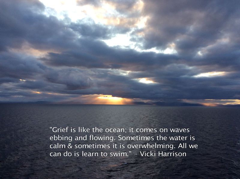 "Grief is like the ocean; it comes on waves ebbing and flowing. Sometimes the water is calm & sometimes it is overwhelming. All we can do is learn to swim." - Vicki Harrison