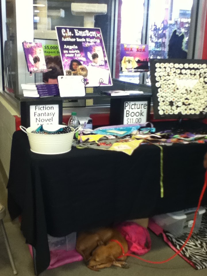 During a book signing of my book, Angel in a Fur Coat, at the city shelter event today,I noticed a sweet little pup sitting so quietly and sadly in a kennel cage. Her information page on the kennel door stated her name was Hope and she was 4 months old. I asked if I could take her out of her cage and keep her at my table with me and help her find her new home. Hope put on her little Please Adopt Me vest and hung out with me until her new family walked through the door, saw her, and adopted her.