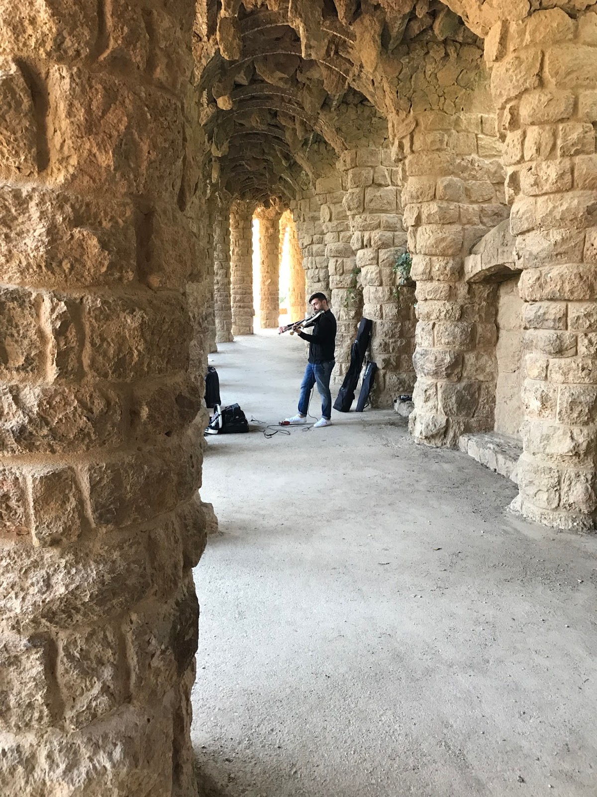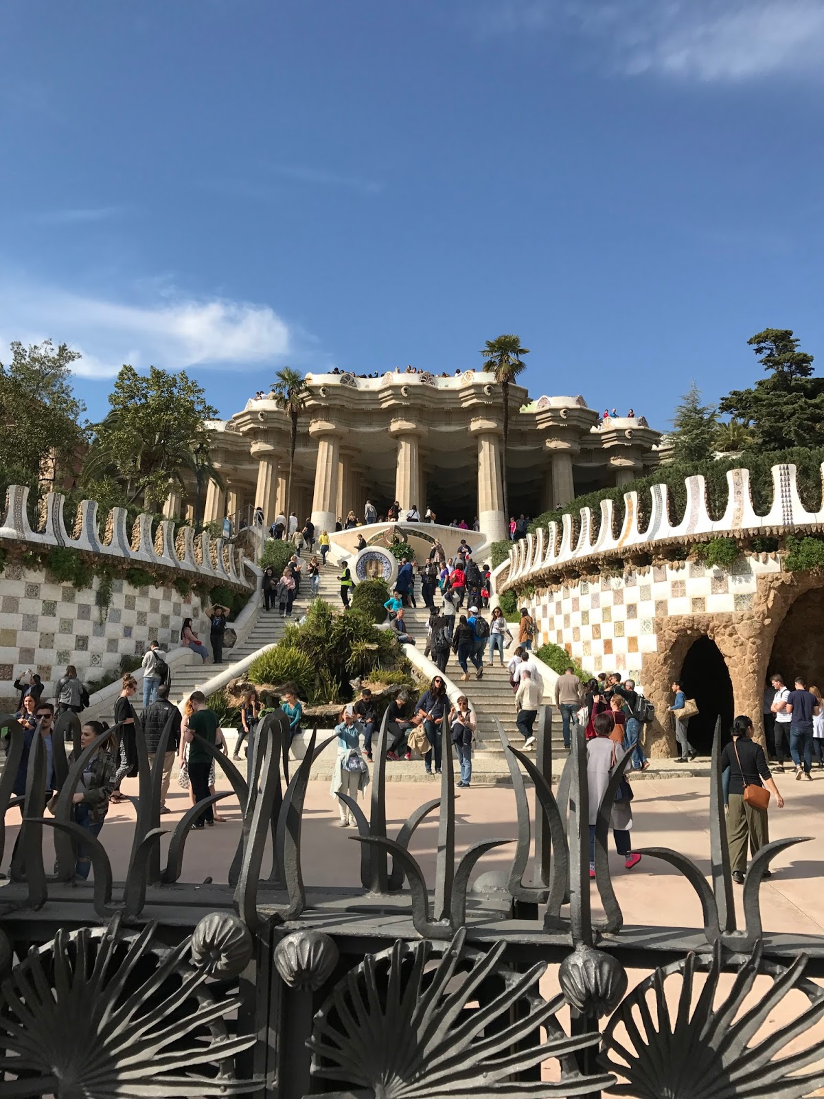 Barcelona wasn't exactly warm that afternoon, and in the shade of the trees many people zipped up their light jackets, but as long as you were walking in the sunshine, the temperature in Park Guell could not have been more perfect.