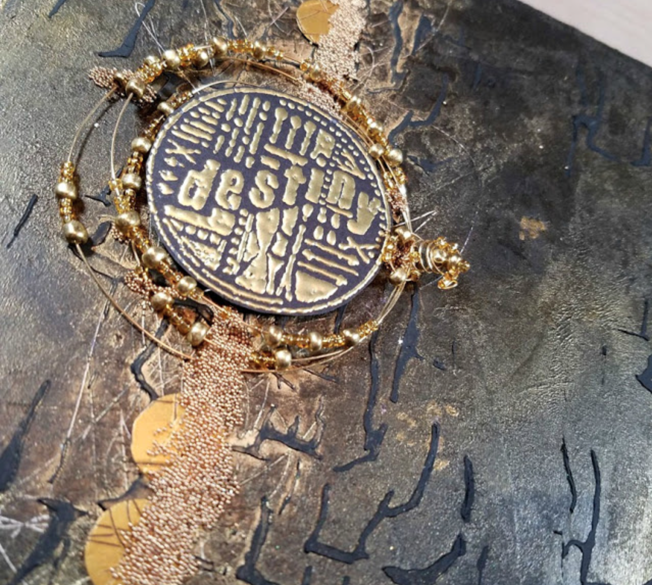 (PaperArtsy Paint Set 1, Paint Set 2), Eclectica 03 Rubber Stamp Set, Eclectica 04 Rubber Stamp Set, Wood Chips Set 1; Spellbinders Word Circles 1 Die and Stamp Set; StencilGirl Discovery Stencil, Transform Stencil)Nikki Acton