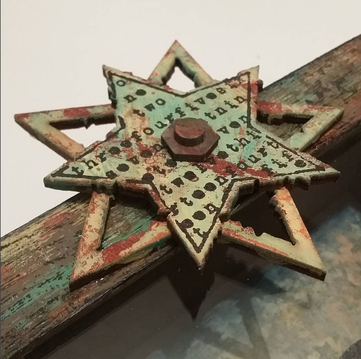 (PaperArtsy  Paint Set 1Paint Set 2), Eclectica 03 Rubber Stamp SetEclectica 04 Rubber Stamp SetWood Chips Set 1; Spellbinders Word Circles 1 Die and Stamp Set; StencilGirl Discovery Stencil, Transform Stencil)