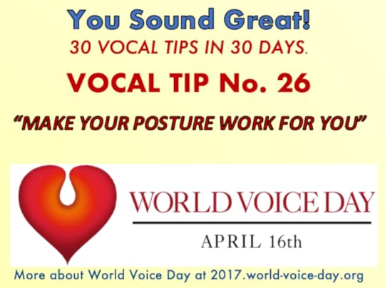 Most of us think of our posture as a function of our backs. But most doctors will tell you that a person will reap the benefits of good posture primarily in the neck and head. For singers, not only does good posturelookfabulous, it makes efficient use of the larynx possible, so you sound fabulous as well.People who have poor posture tend to reach out or up with their chins when they talk or sing. This position puts pressure on the larynx. You’re still making sound, you’re just making your voice work much harder. Throwing your shoulders back won’t help, but there is a way to create healthier posture in a way that can become a habit: liftupjust a bit from your sternum.TAKEAWAY:Good posture is worth the effort. Give yourself the chance to get the hang of it.