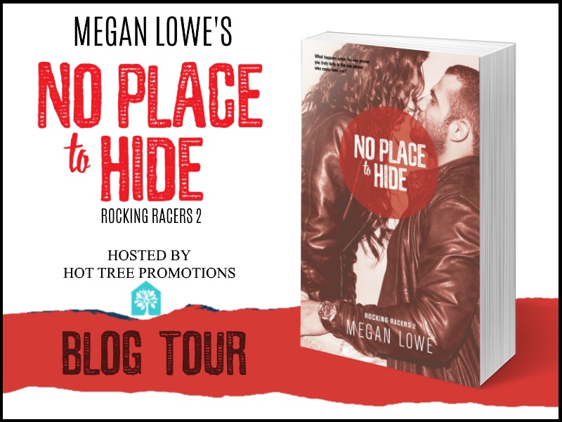 Author: Megan LoweTitle: No Place to HideSeries: Rocking Racers, Book 2Genre: Contemporary Sports RomanceRelease Date: March 11, 2017Publisher: Hot Tree PublishingDesigner: Claire Smith