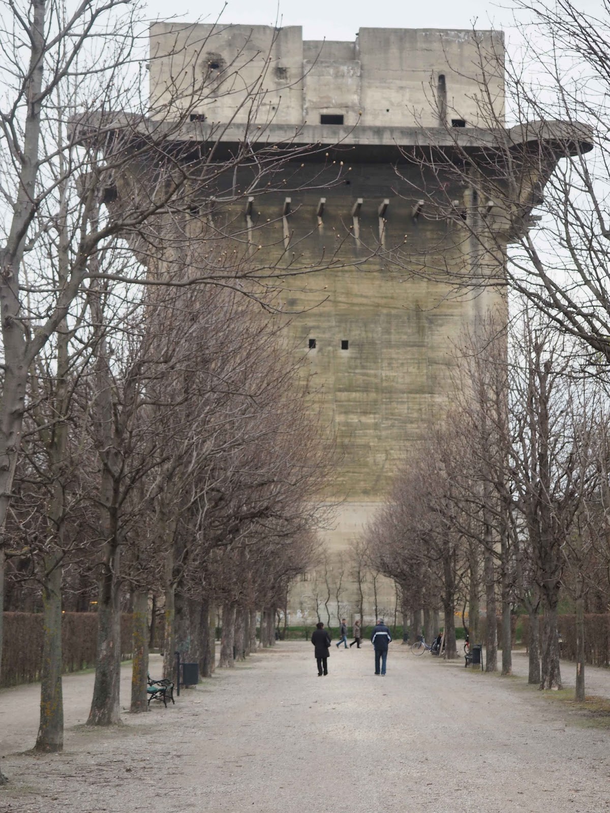 And then there was a walk around the Flak Towers – I hadn’t known about them, and I definitely should have. Building started in 1942 on Hitler’s instructions, designed by Professor Friedrich Tamms, constructed using forced labor, and they were functional by 1944, which might be thought to be a bit late. There were guns at the top on the outside, and an air raid shelter inside, and lord knows they were solid and impregnable. They’re still wildly impressive and in their totalitarian brutality.