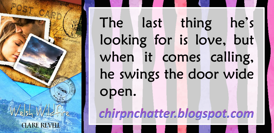 What, if anything, do you and your heroine have in common?She and my daughter have the same name. And my other daughter has a guest role, a very minor character towards the end of the book. Jess not only chose her profession in the book, but picked the cast list and hero as well. Of course, Josh is played by Gerard Butler. A major crush of both of ours. Oops, did I just say that out loud?What fun, for you and for your girls! And (this is me, whispering…) doesn’t everyone have a major crush on Gerard??? lolWhat book are you currently reading?I’m reading Time Search by Danele J. Rotharmel. Actually I’m binge reading lol. I got book three—Time Search—via the PBG subscription service, then decided I really ought to read one and two first. What can I say? Time travel can be addictive.Time travel is very addictive. I recently read that same book. It's a good one! :)Do you usually insert a spiritual theme into your books? If so, do you have a favorite?Forgiveness is one of my fave themes. The fact that nothing we can do is too huge for God to forgive us. Over and over again if need be. Of course there is a limit, but I haven’t found it yet, and hope I never will.Well, Jesus instructed us to forgive 490 times a day. He’s far more forgiving than are we, so I think it’s safe to say we’ll never sin or offend beyond His ability to forgive. His grace is everlasting.Thank you so much for visiting Chirp ‘N Chatter today, Clare! It’s always a pleasure to have you.About Welsh Wildfire (Passport to Romance)