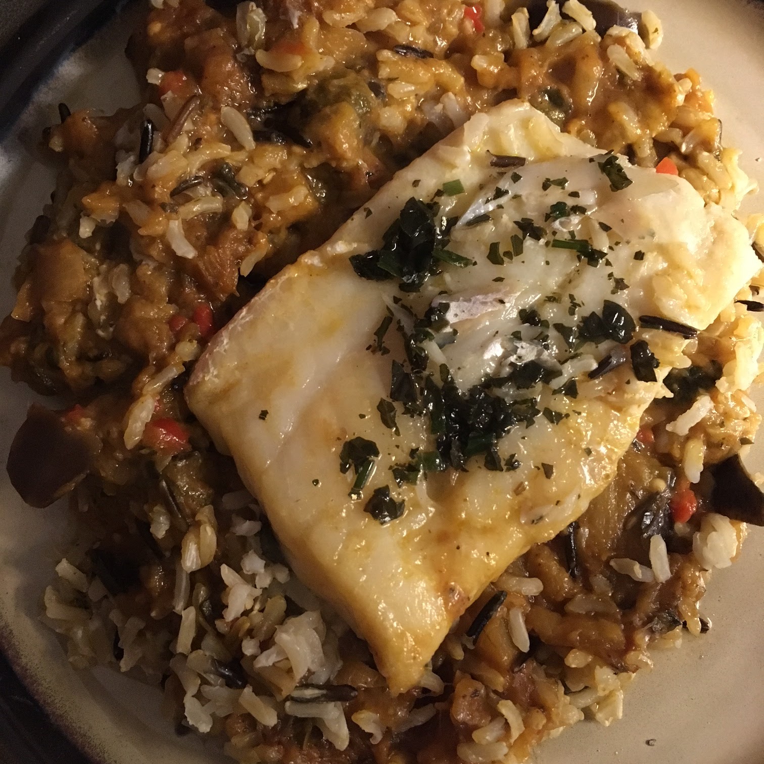 But the real excitement came when it was time for dinner. While shopping at Trader Joe's, I stumbled upon Cod Provencale with Ratatouille & Rice in the frozen foods section. It seemed like the most perfect meal I could ever pair with my watching of Beauty and the Beast.