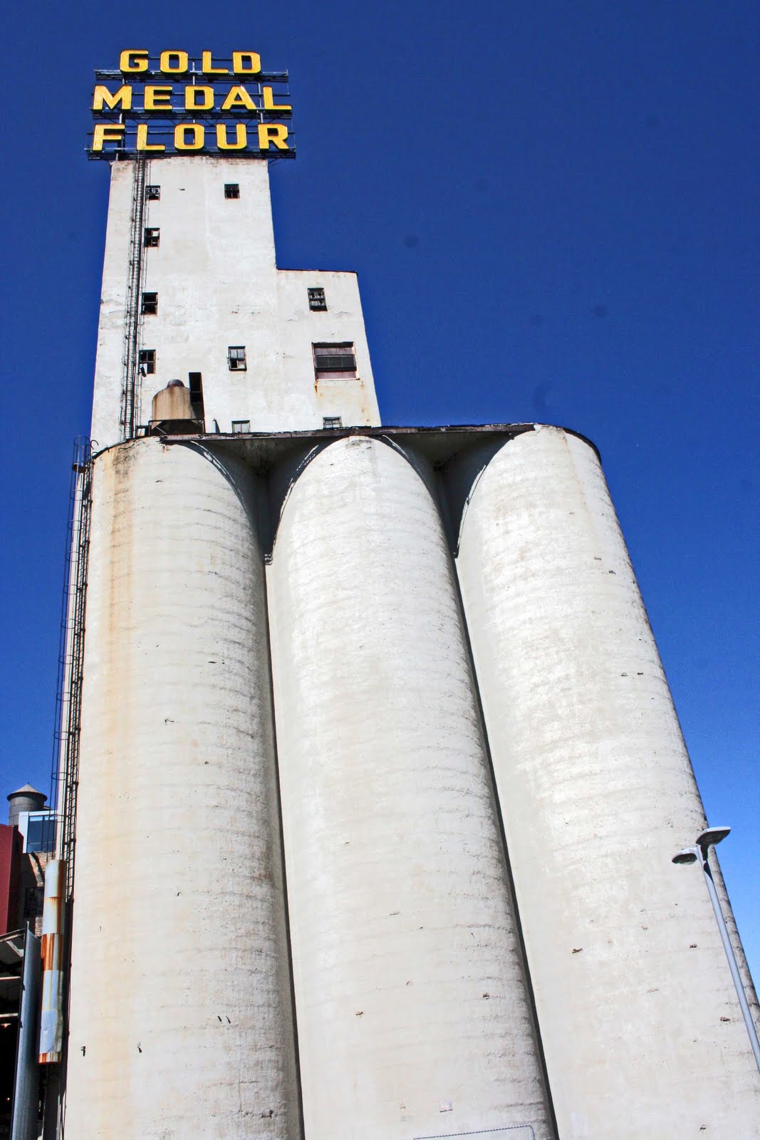 Like a lot of people, I'm attracted to ruin, and I certainly enjoyed the sight of the ruined (and now carefully preserved) mill - they've turned it into a museum – but in fact I didn't take any photographs of the burned out mill. It seemed too obvious. I photographed the abandoned but intact Gold Medal Flour elevators instead, but I don't know if that would buy me anything in Mr. Herzog's eyes.