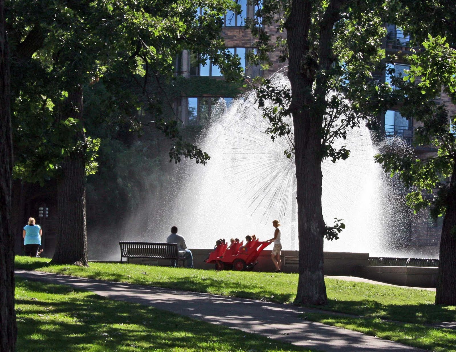 The plan was simple enough, to walk from the hotel, through downtown to the Minneapolis Sculpture Garden (described satisfyingly as "a project of the Walker Art Center"), a walk that I could see from the map would take me through Loring Park, a place with a couple of expanses of water, and indeed a spectacular (if not strictly sculptural) fountain.