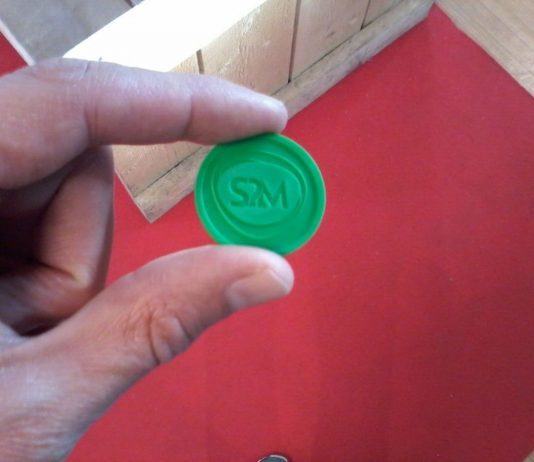 Eenmaal bij de ingang valt het me op dat er, naast een knusse koffietafel, ook een scherm staat met de vraag: ‘What is your mission today?‘ Er volgen wat hilarische inchecktaferelen, want mensen proberen zich aan te melden, maar onze data worden niet altijd door het systeem herkend. Ook krijgen we voor één drankje een plastic, 3D-geprint muntje met het logo ‘S2M’ erop. Well, where have we seen that name before..