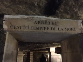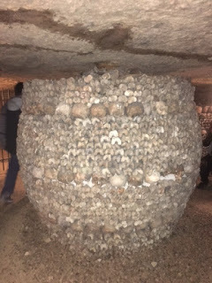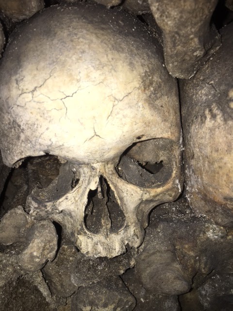 These pictures of the catacombs are from a Spring Break trip to Paris and they hardly capture the haunting quality of the place. The arch at the entrance is translated to saying: STOP: YOU ARE ENTERING THE KINGDOM OF THE DEAD